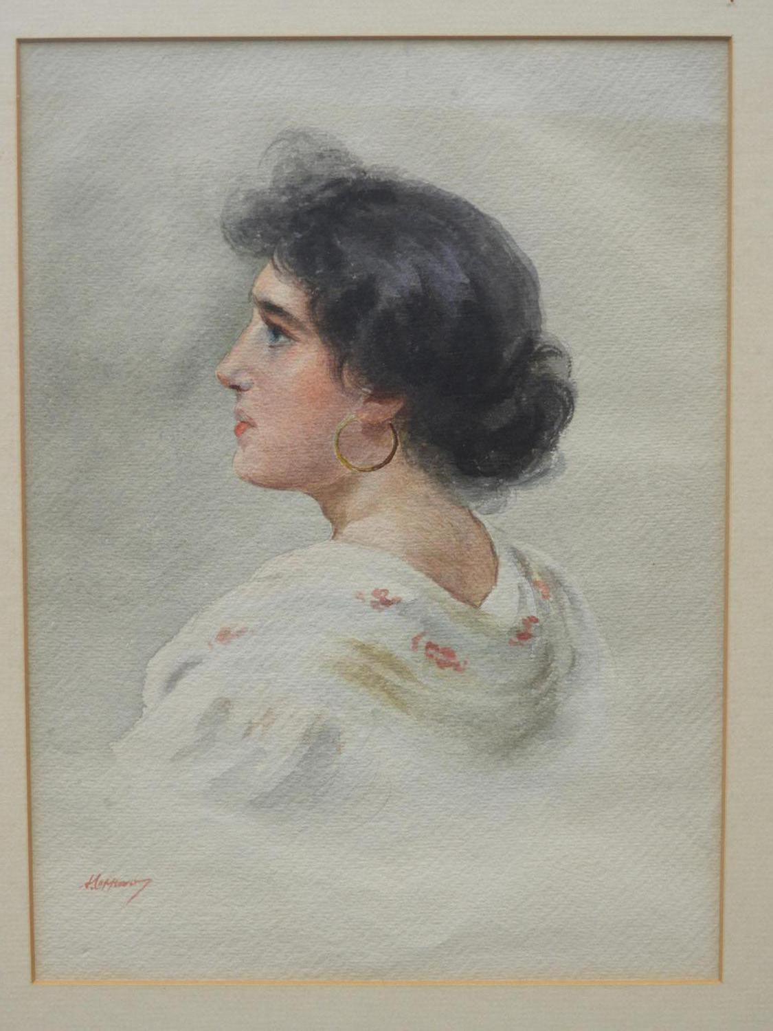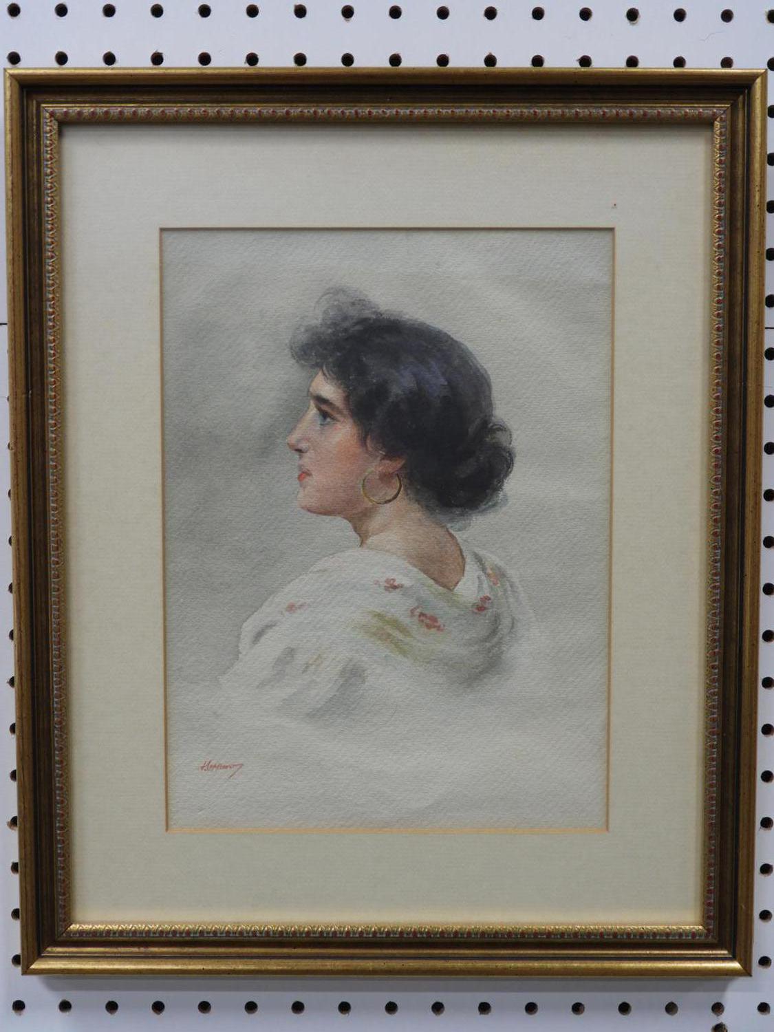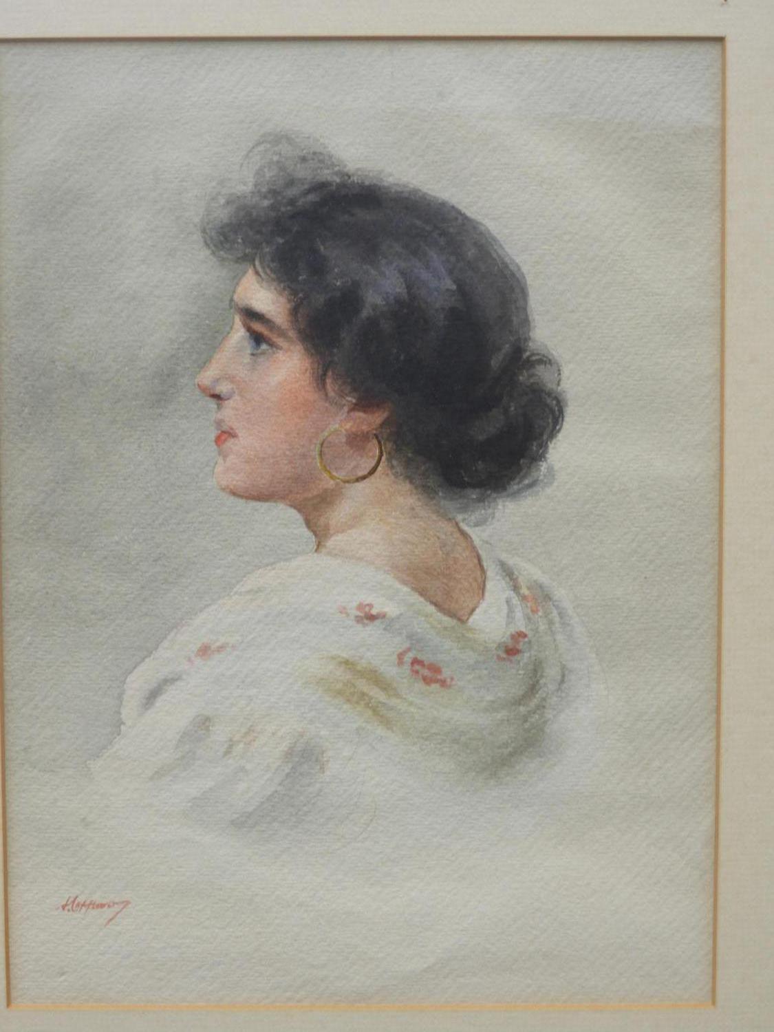 indistinclty signed watercolour, 12 1/2" x 9", "portrait of a lady"