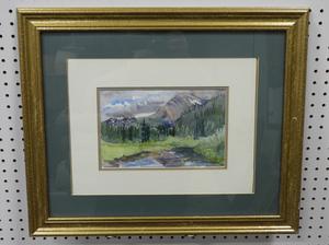 jean w. a. forder, watercolour, 6 1/2" x 10 1/2", "mountain landscape"