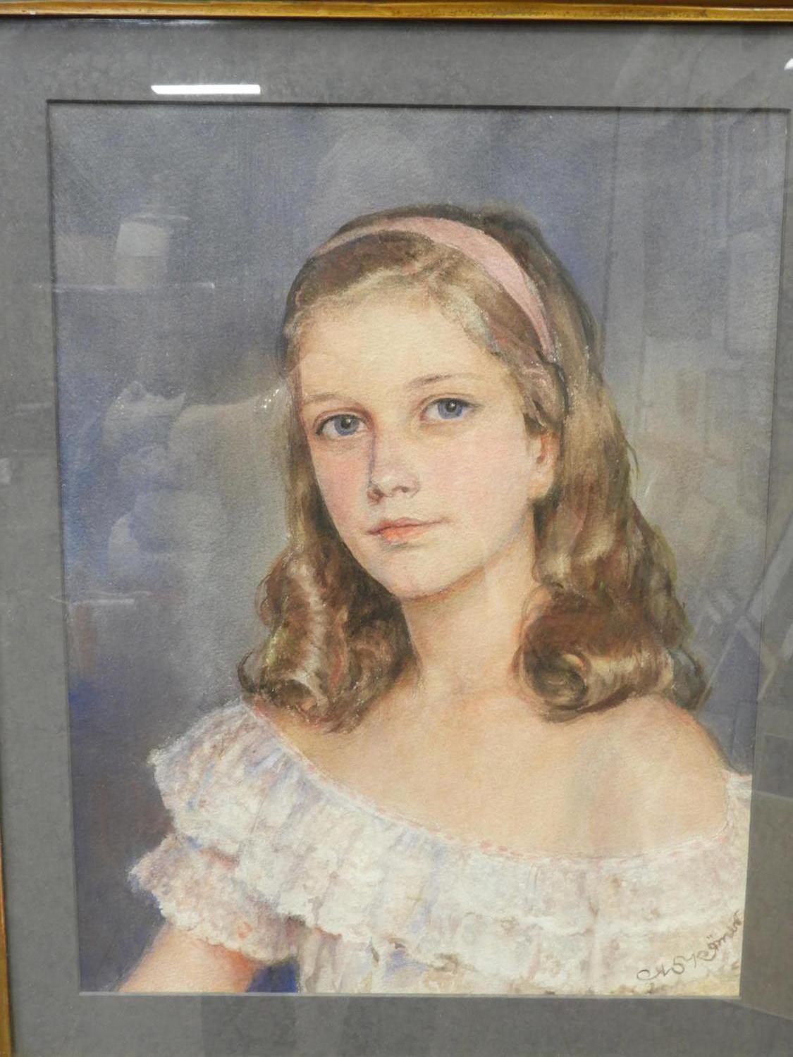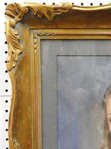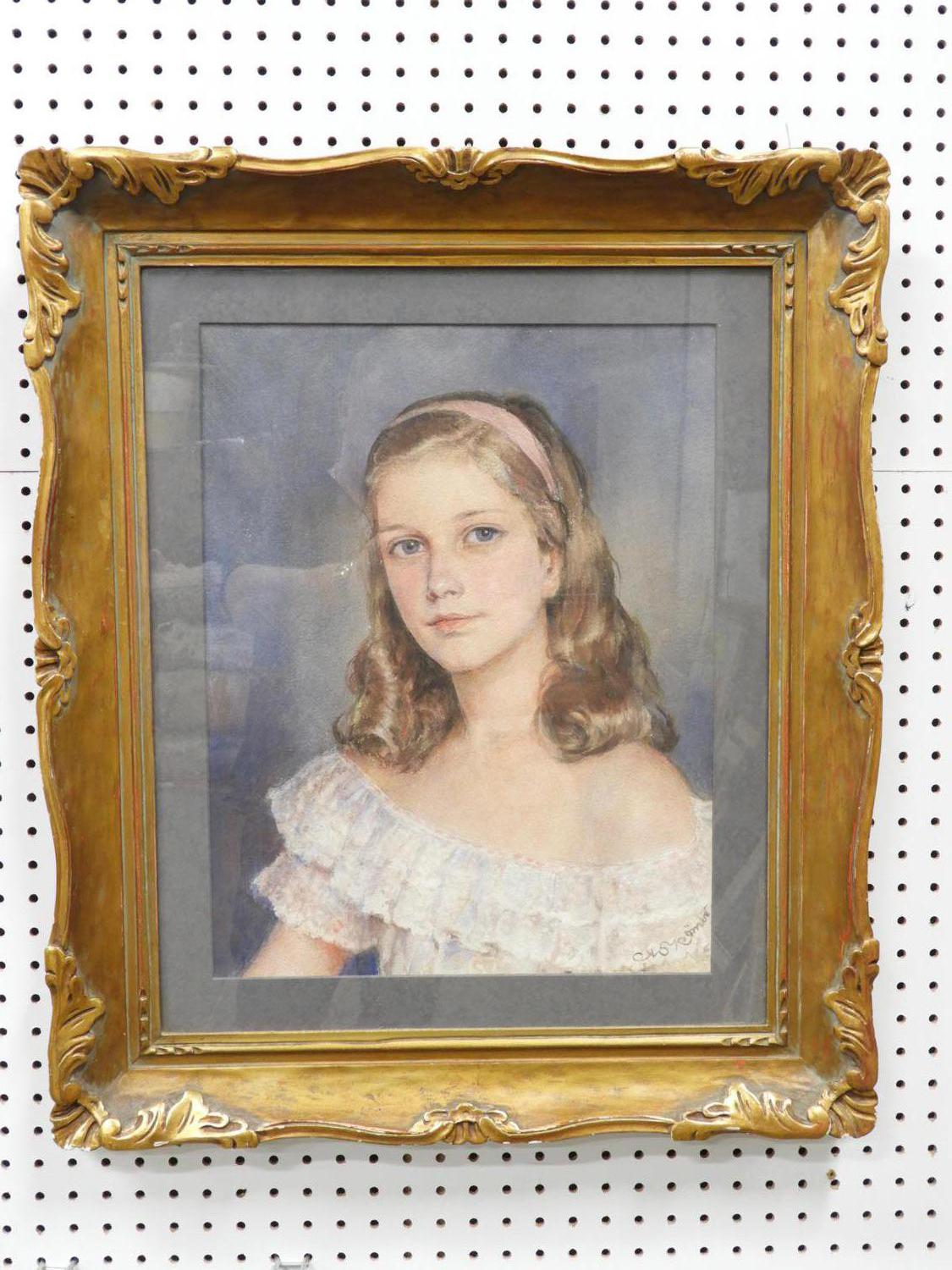 carved and gilded frame, indistinctly signed pastel portrait, 19" x 14 1/2", "young girl"