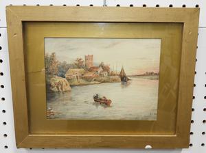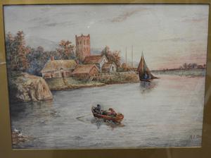 english school watercolour indistinctly signed, 6" x 8 1/2", "canal scene"