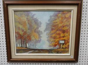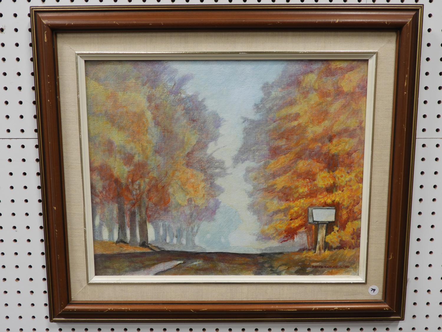 kieth cornell, oil on board, 16" x 20", "autumn scene"