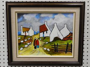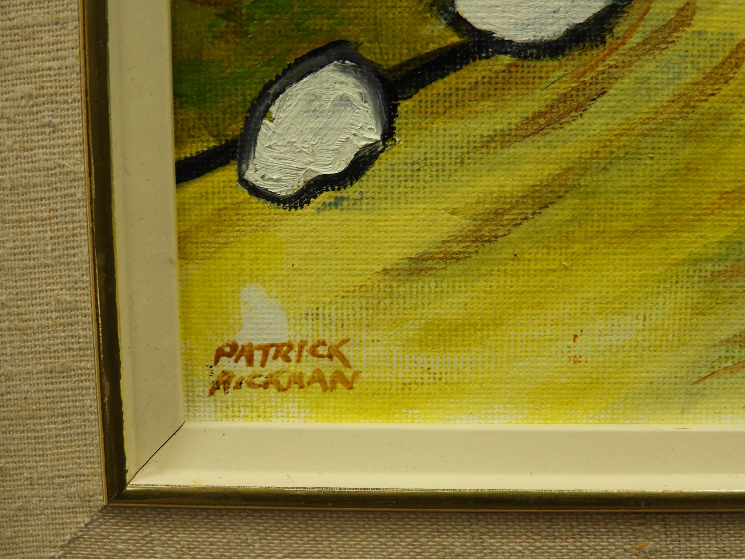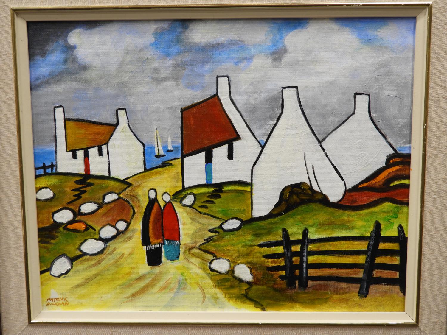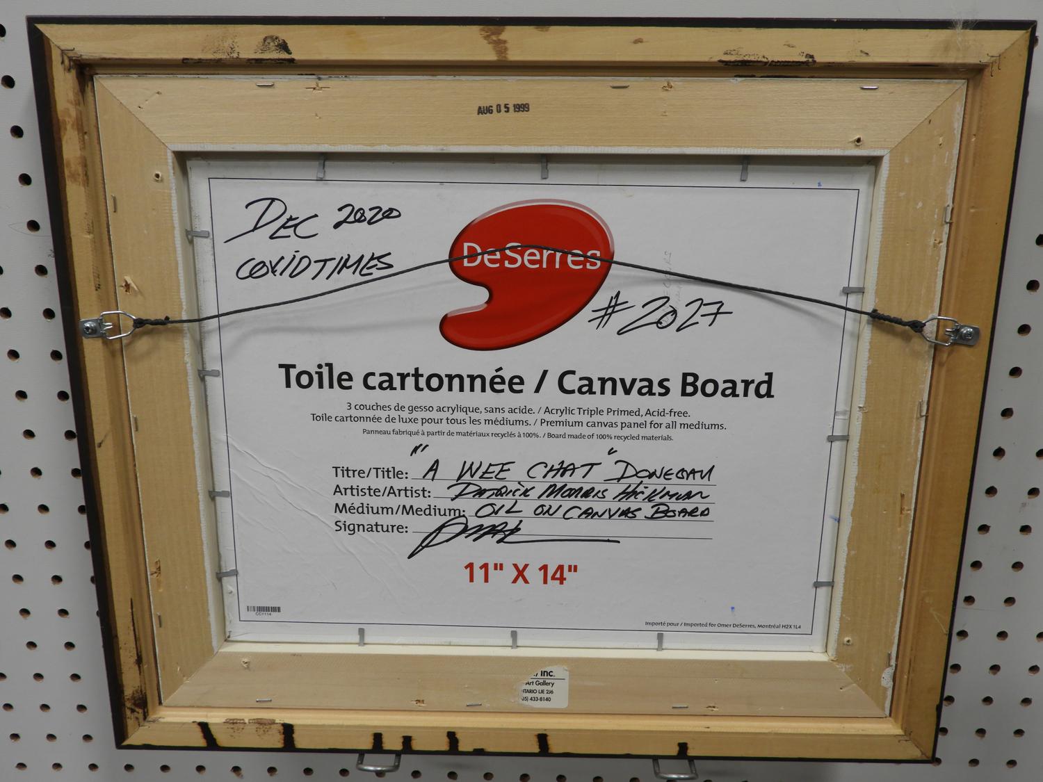patrick morris hickman (b.1946), oil on board, 11" x 14", "a wee chat"