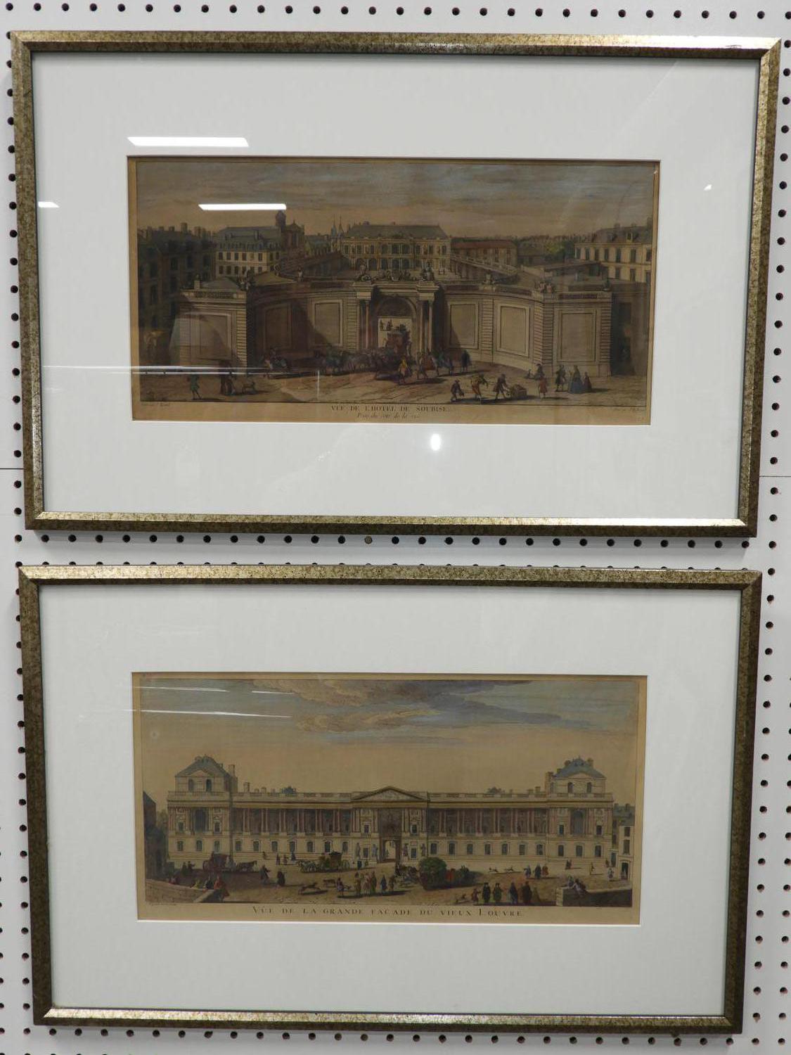 two 19th century french engravings, "louvre" & "hotel soubise"