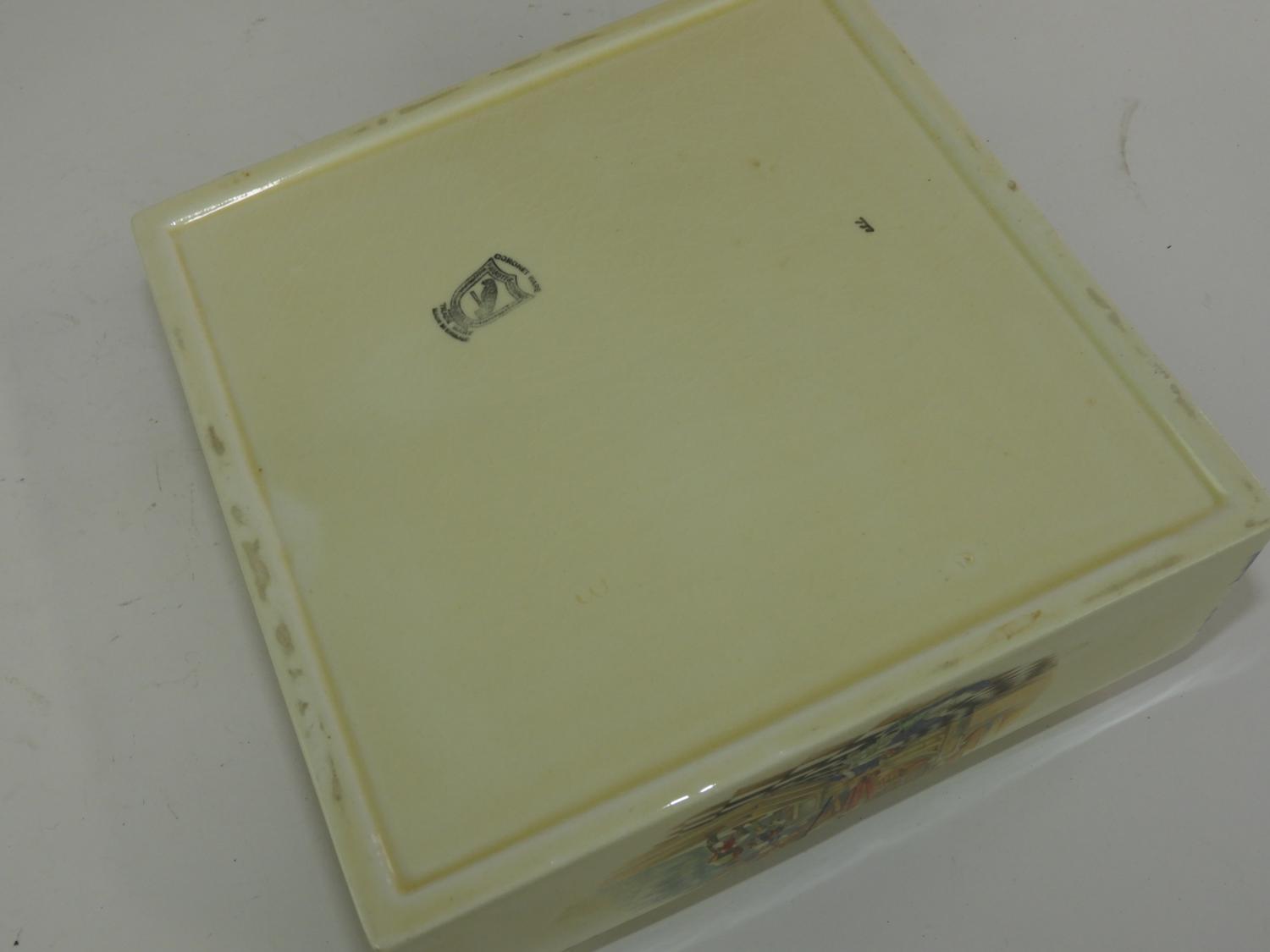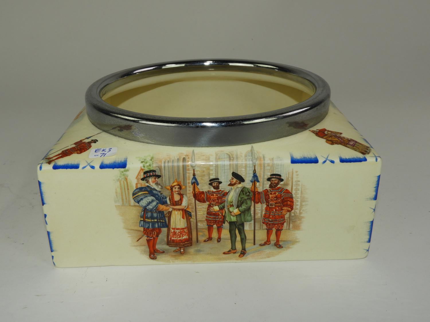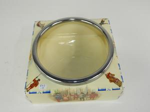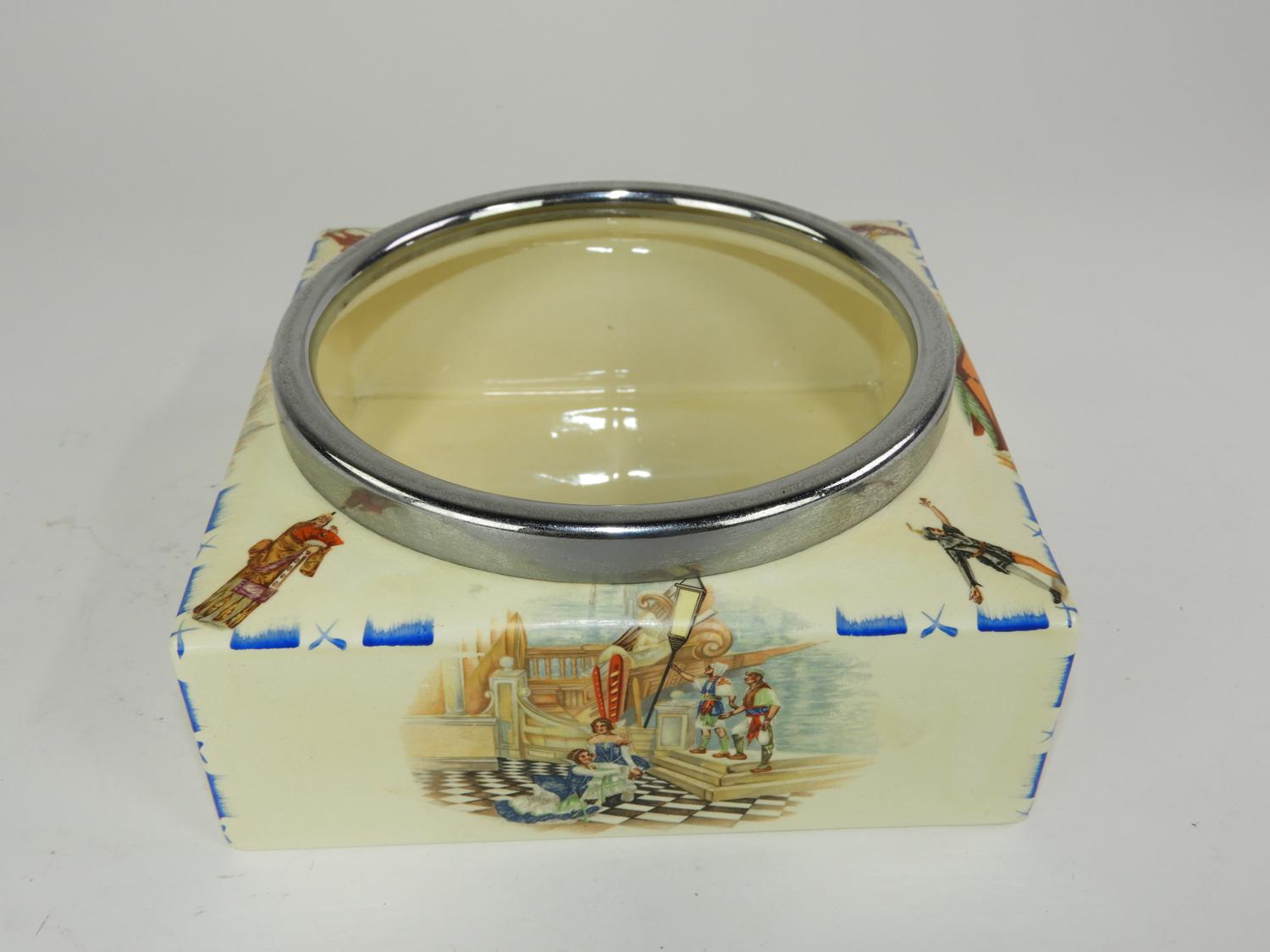 english art deco squre bowl with silverplate rim, parrott and son, burslem, 3 3/4" x 7 3/4"
