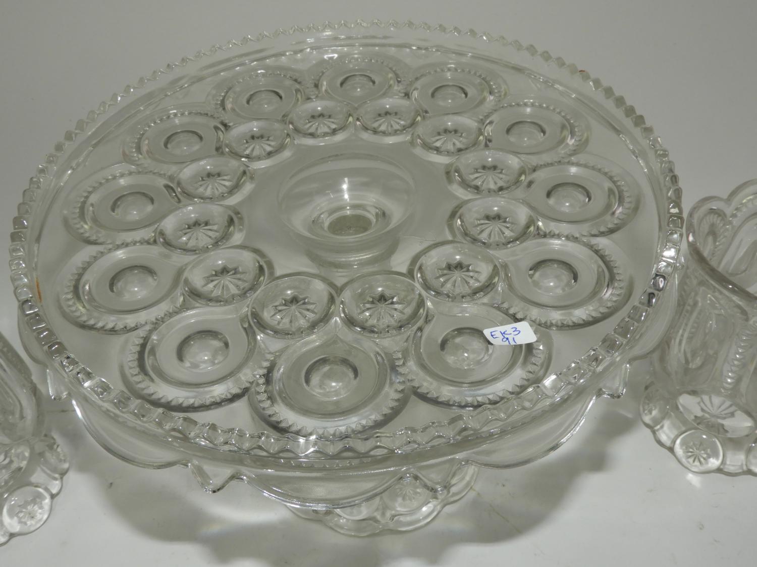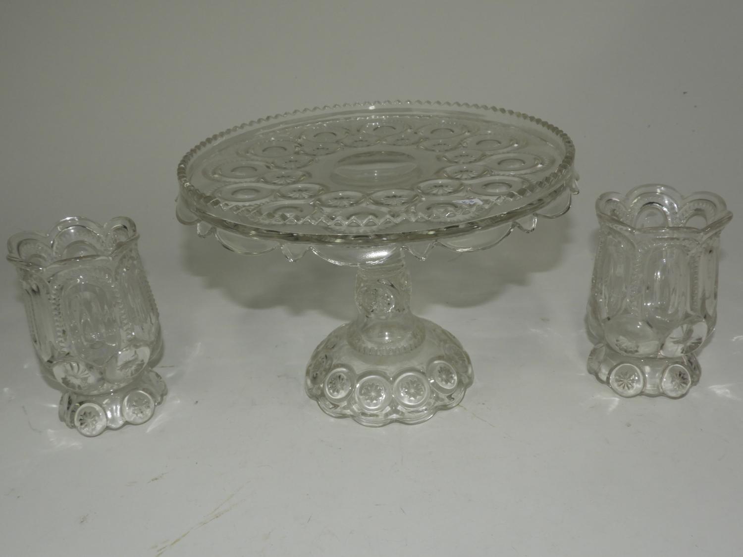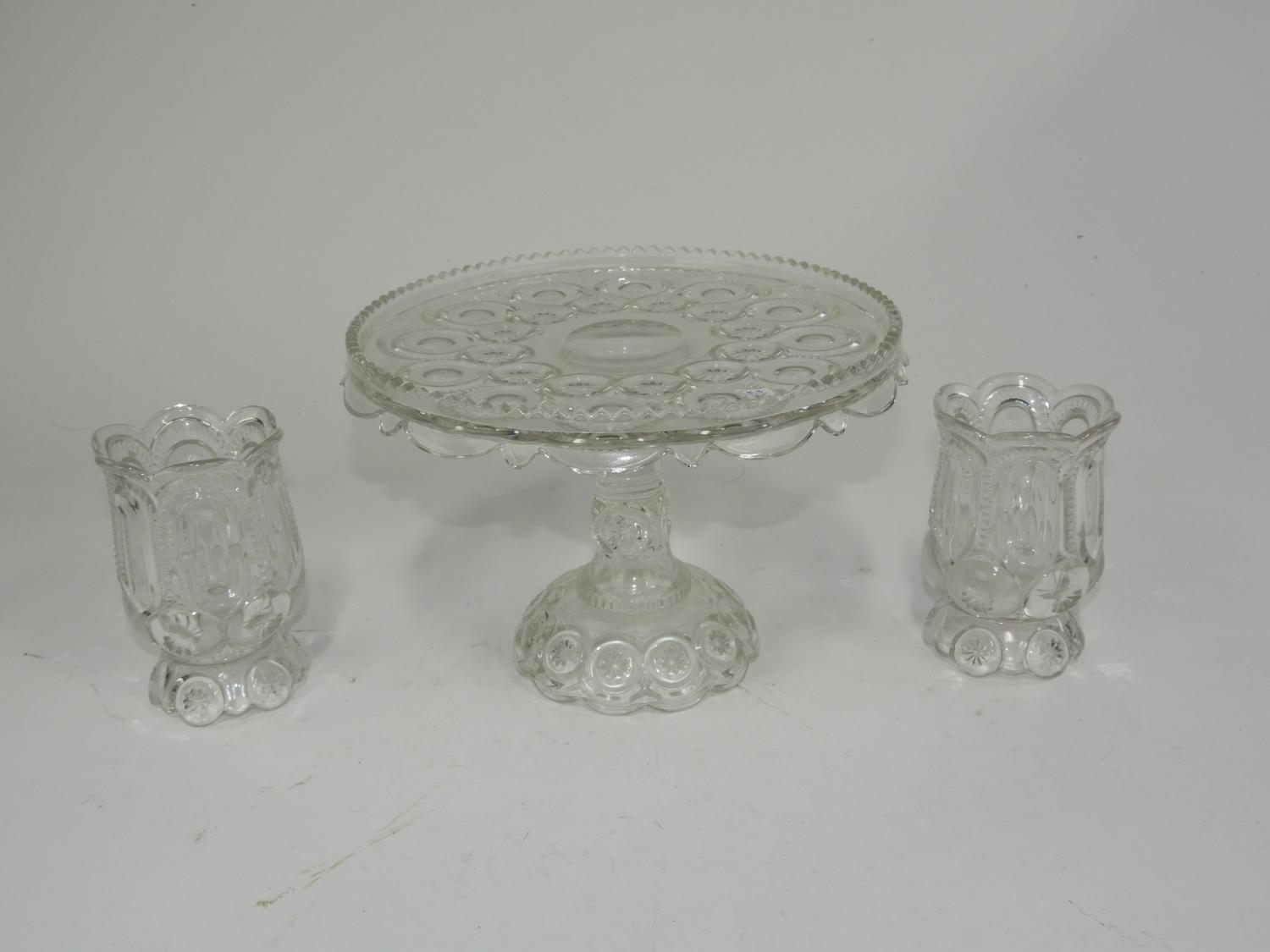 pressed glass comport pair of matching vases