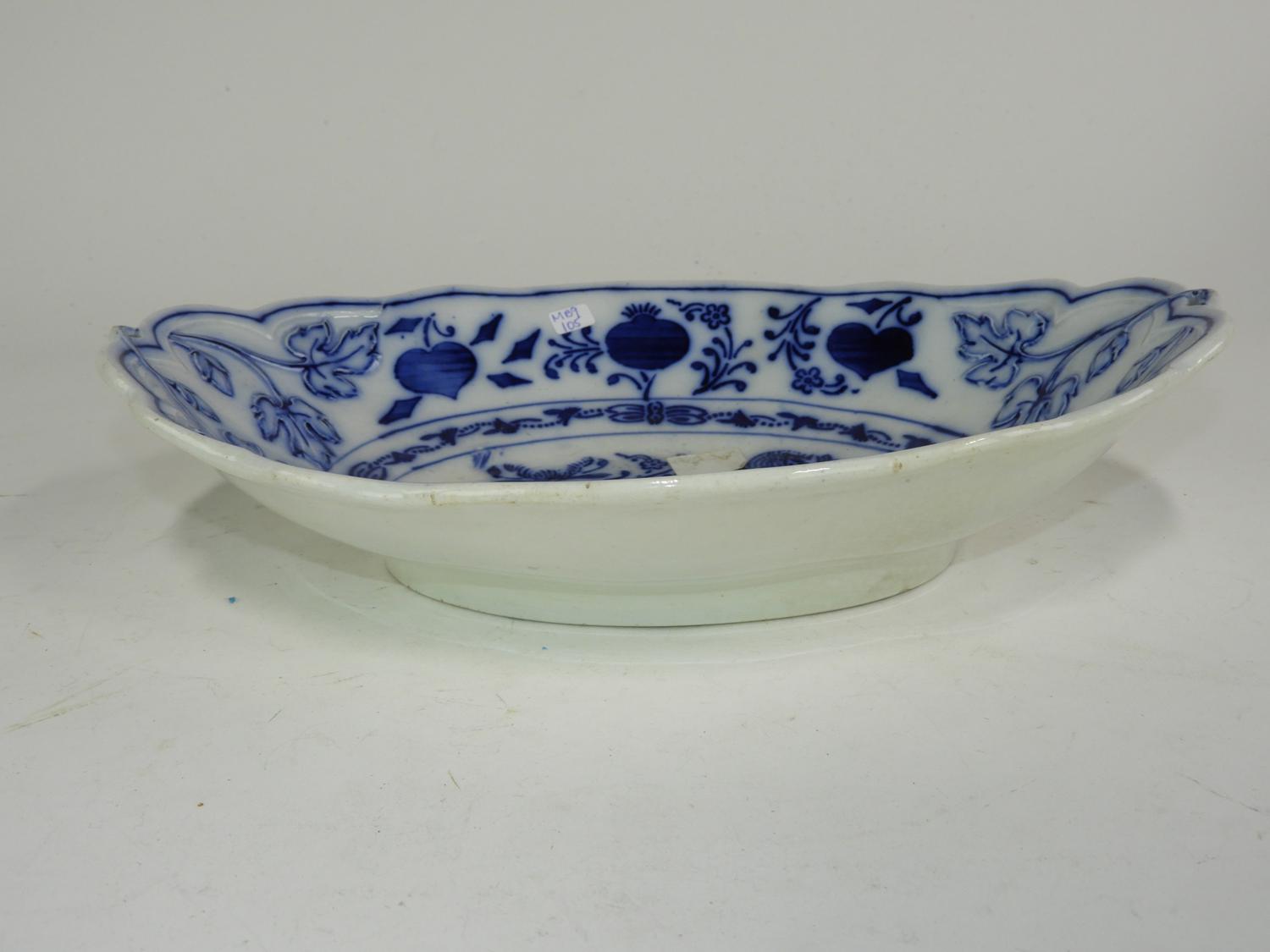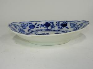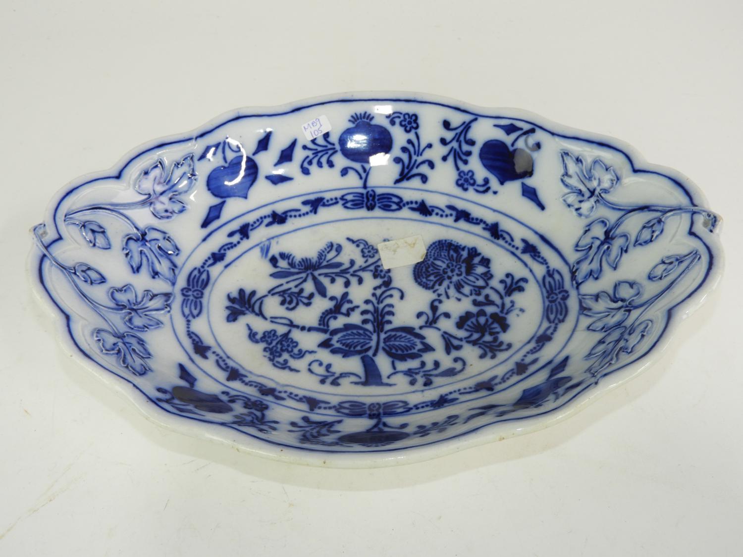 blue and white onion pattern bowl, 13" x 9 1/2"