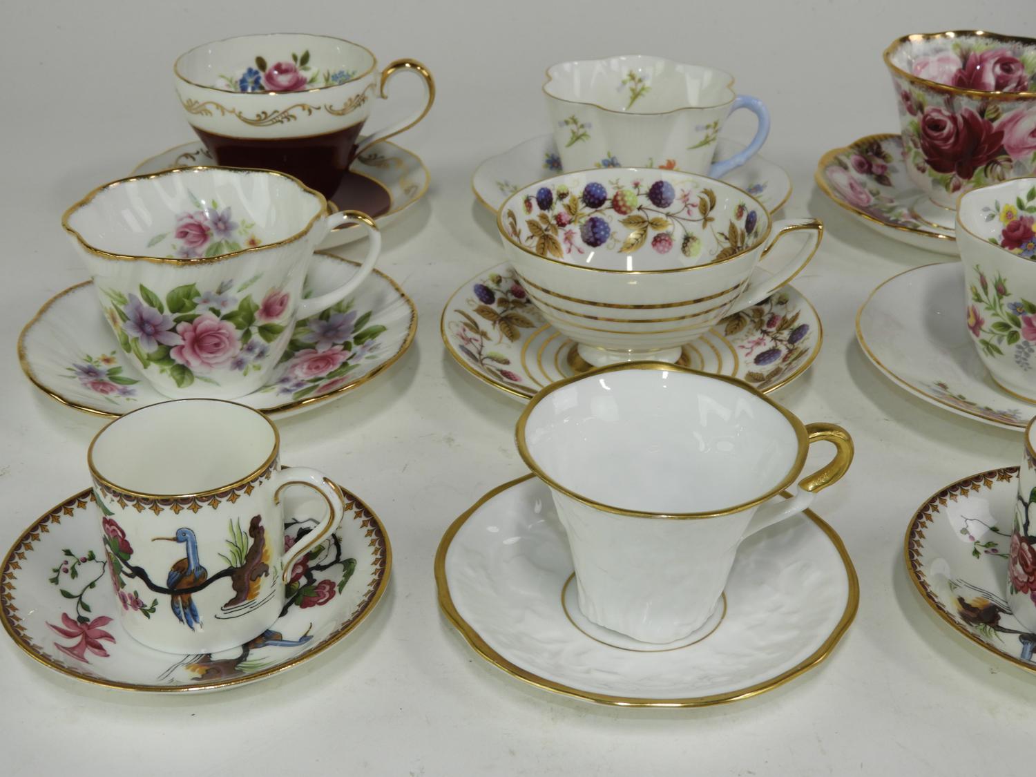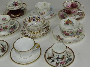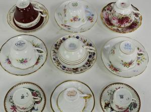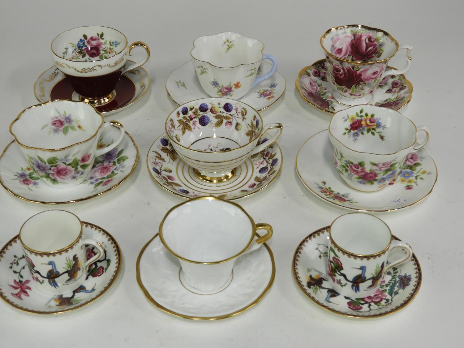 lot of 9 teacups and saucers, including shelley, paragon, royal albert