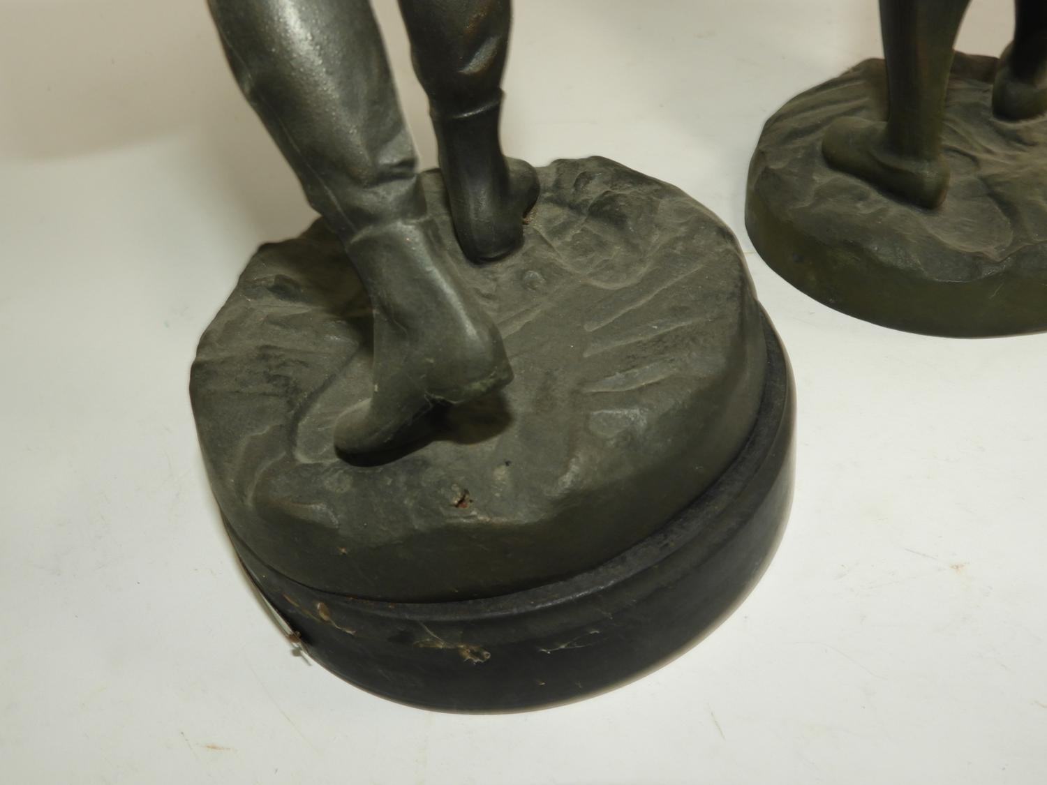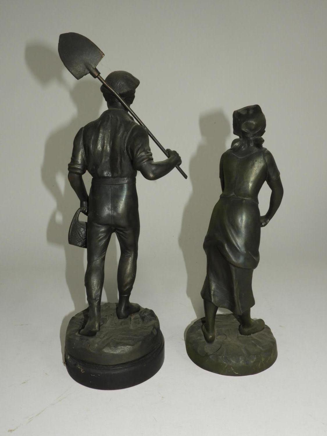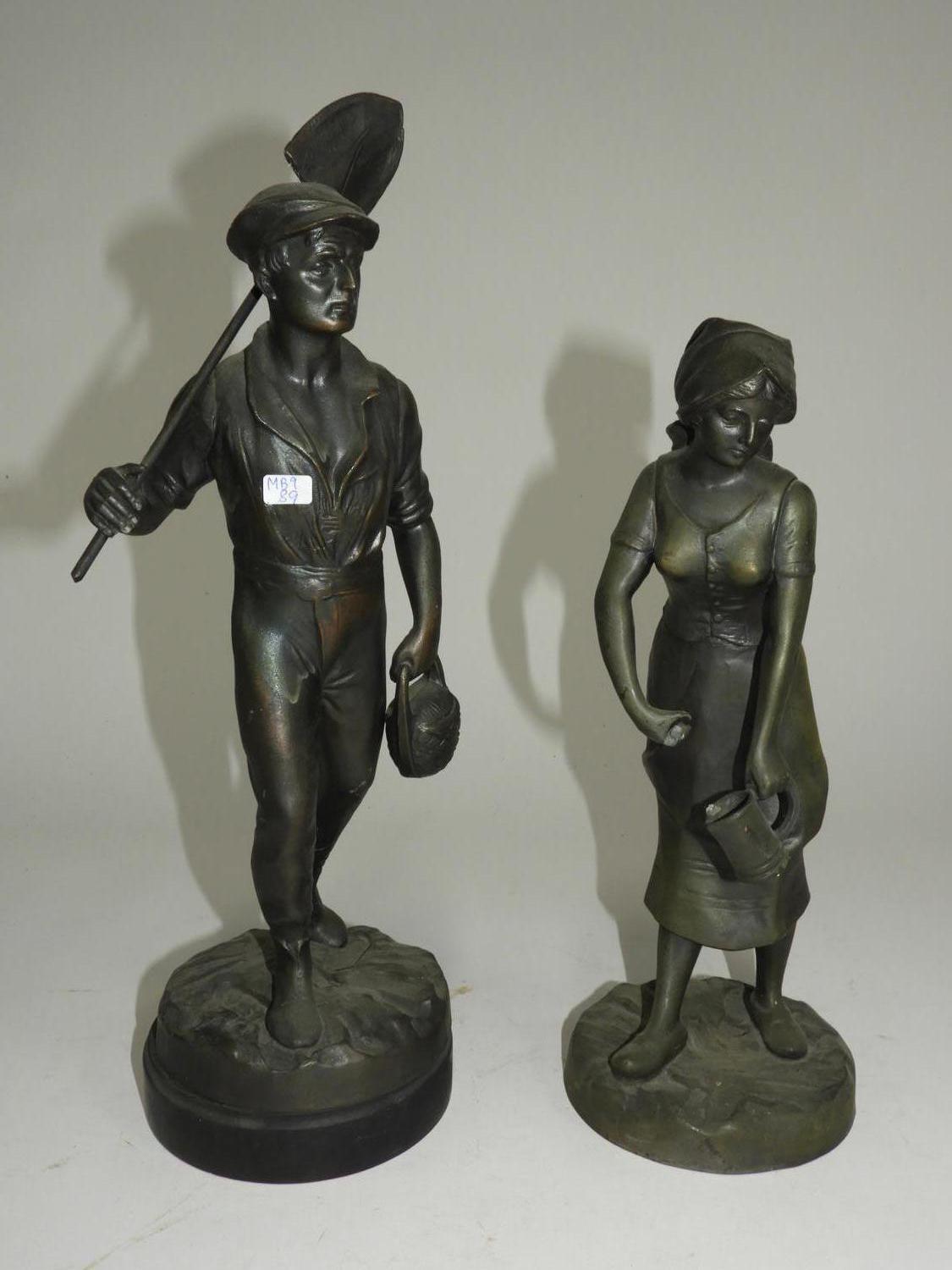 pair of bronze patinated spelter figures, ht. 16" and 12 1/2"
