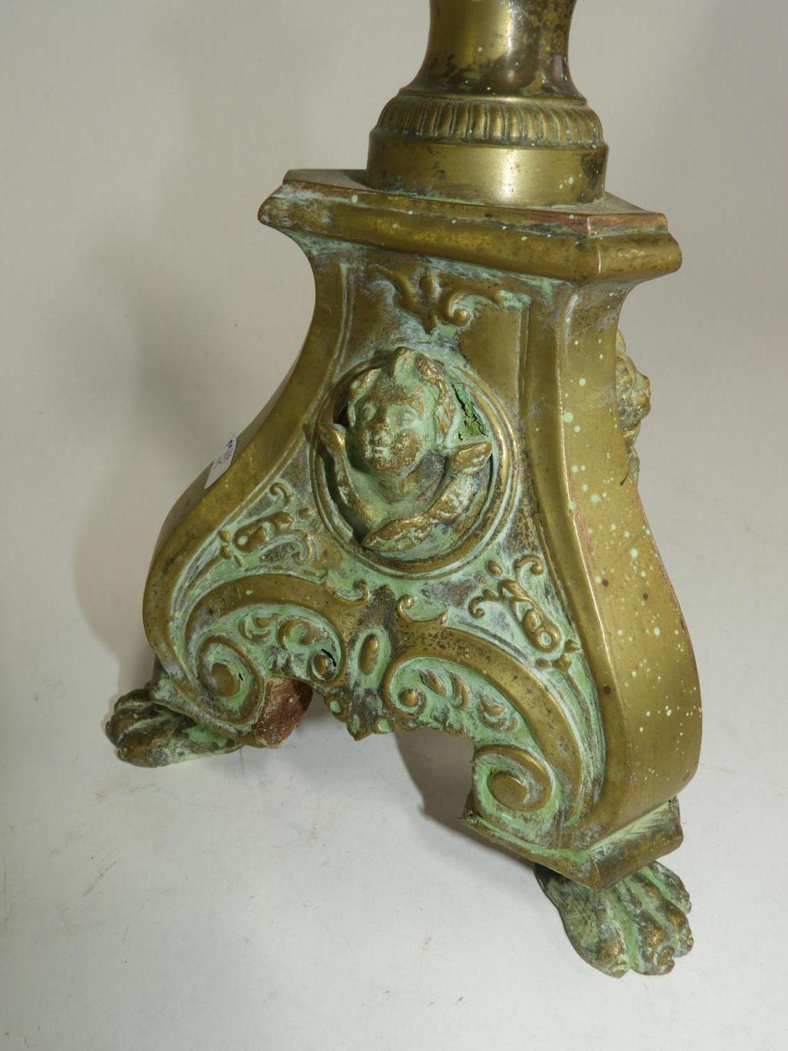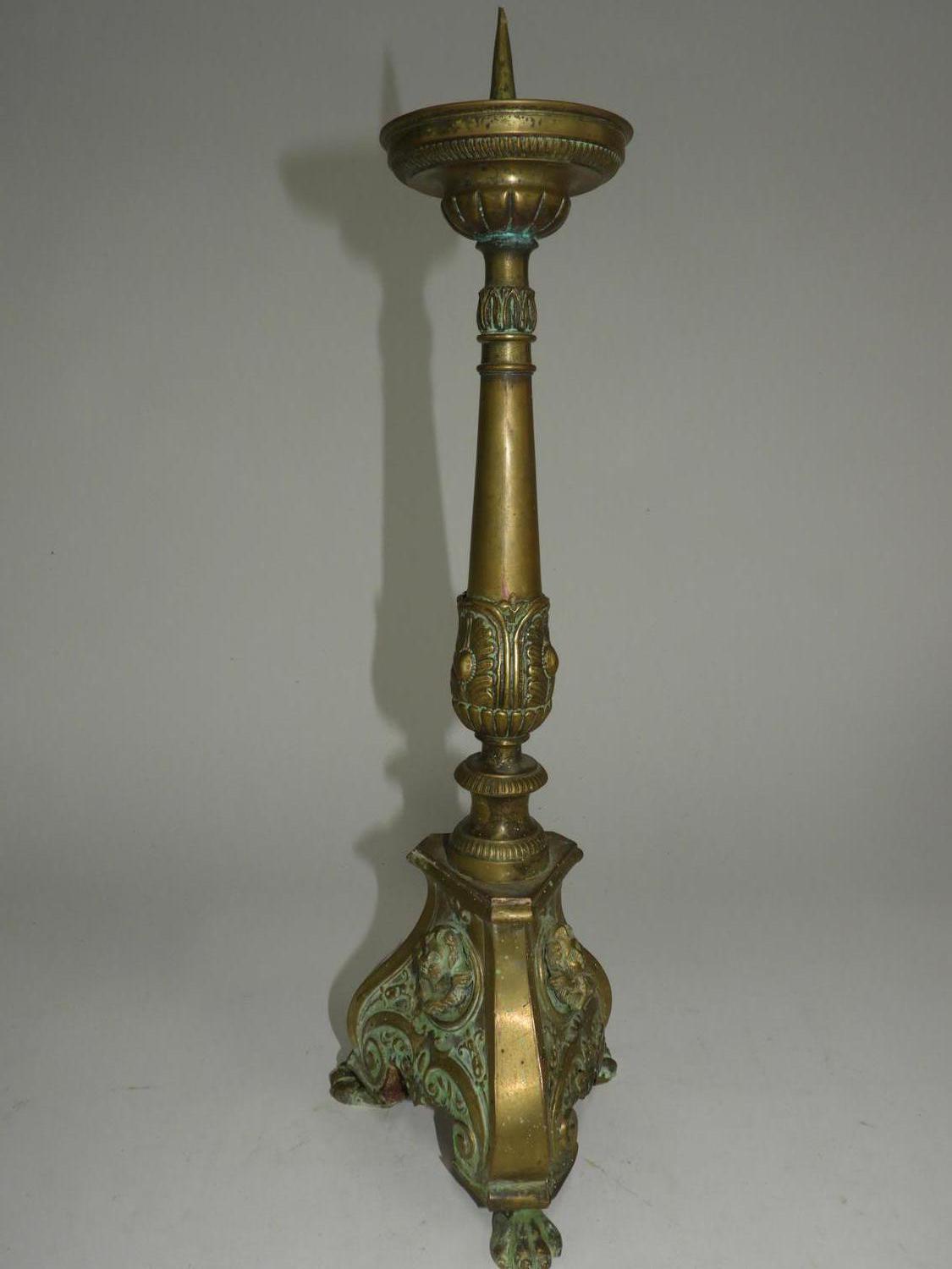 19th century brass reprosse candle stick, ht. 20"