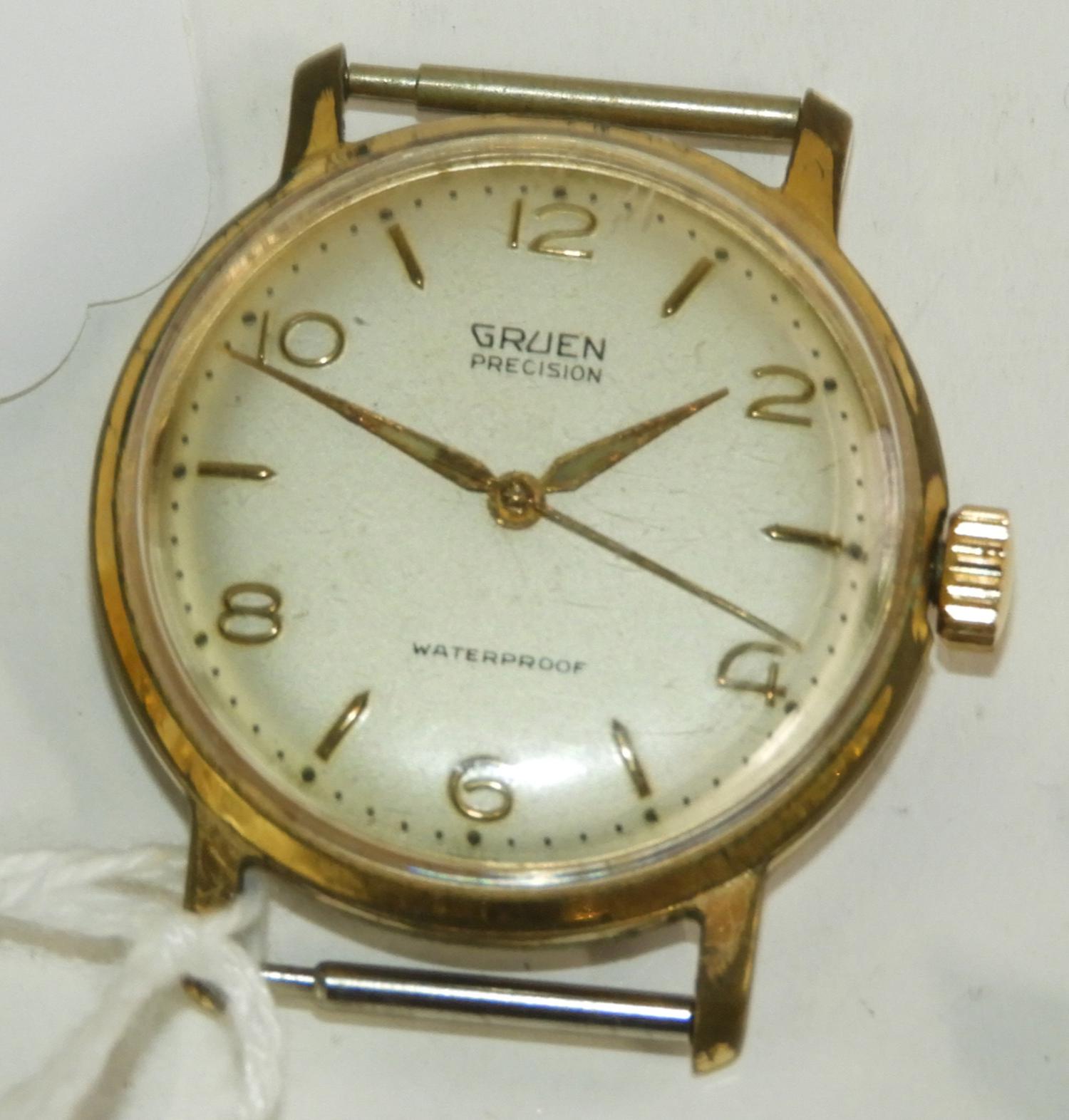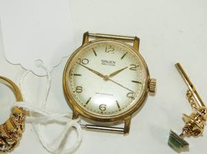 mens vintage gruen watch, gf ring, nephrite cufflinks and tie tac