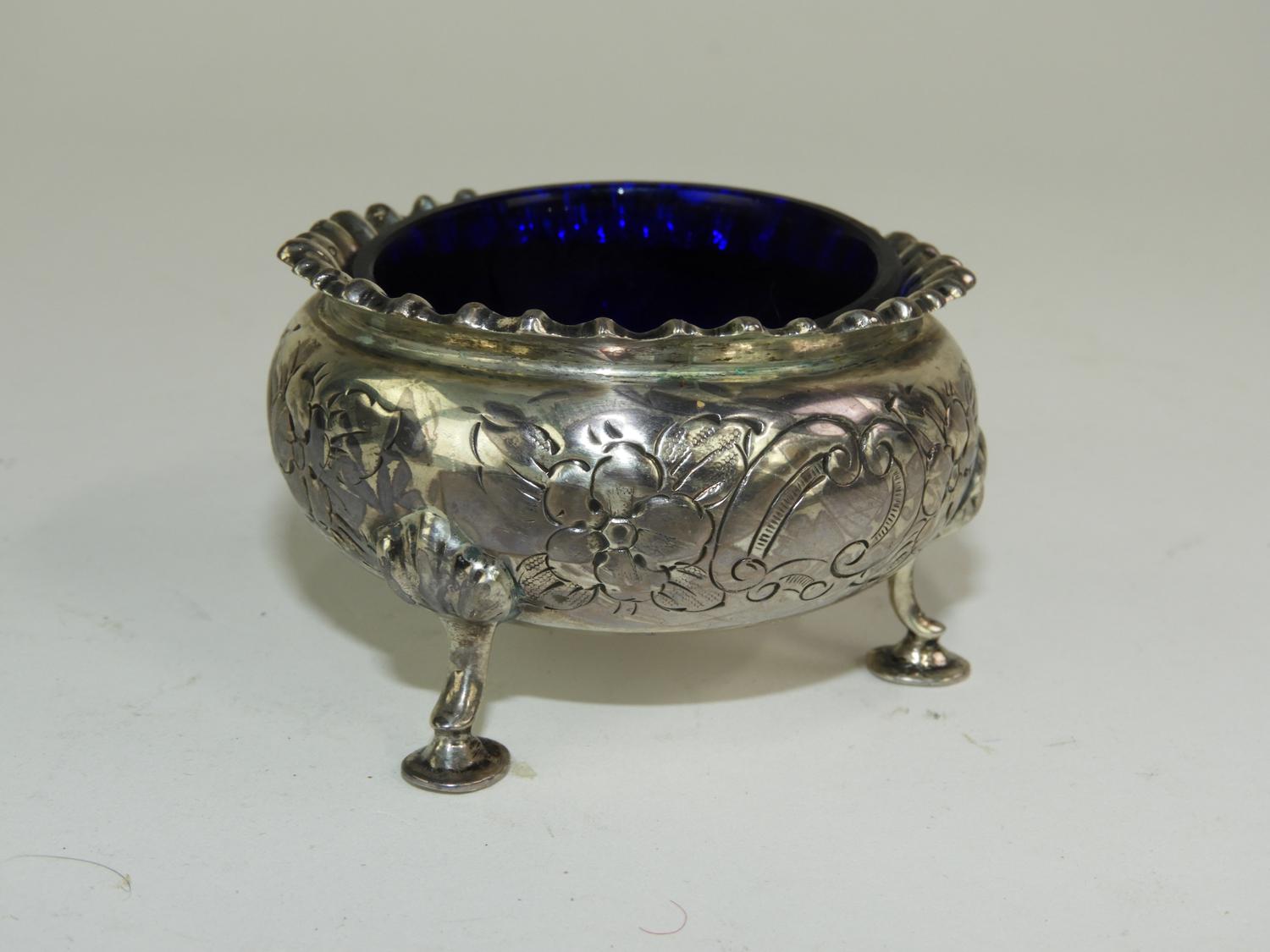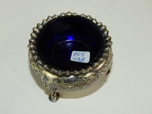 hallmarked sterling silver footed salt, with blue cobalt liner
