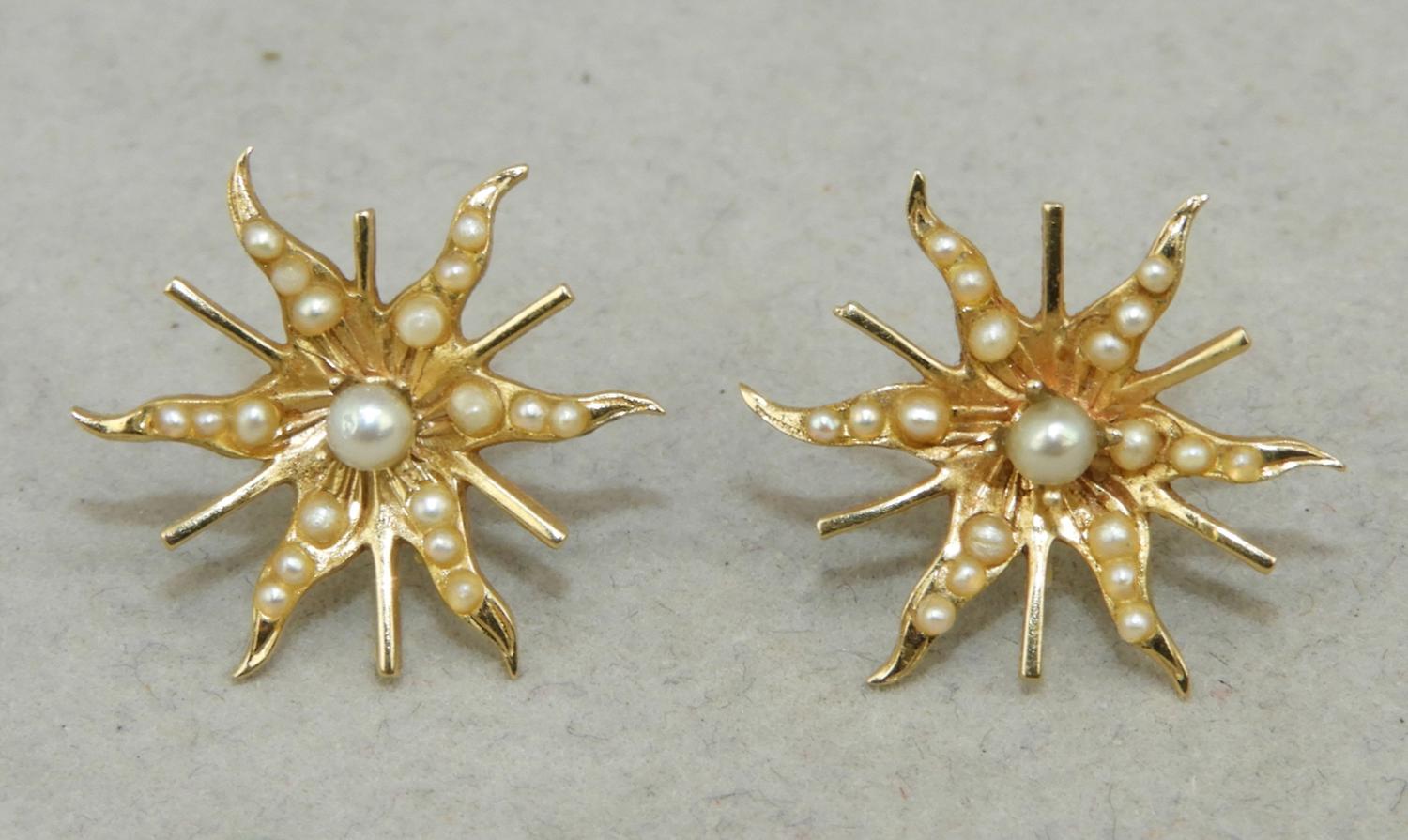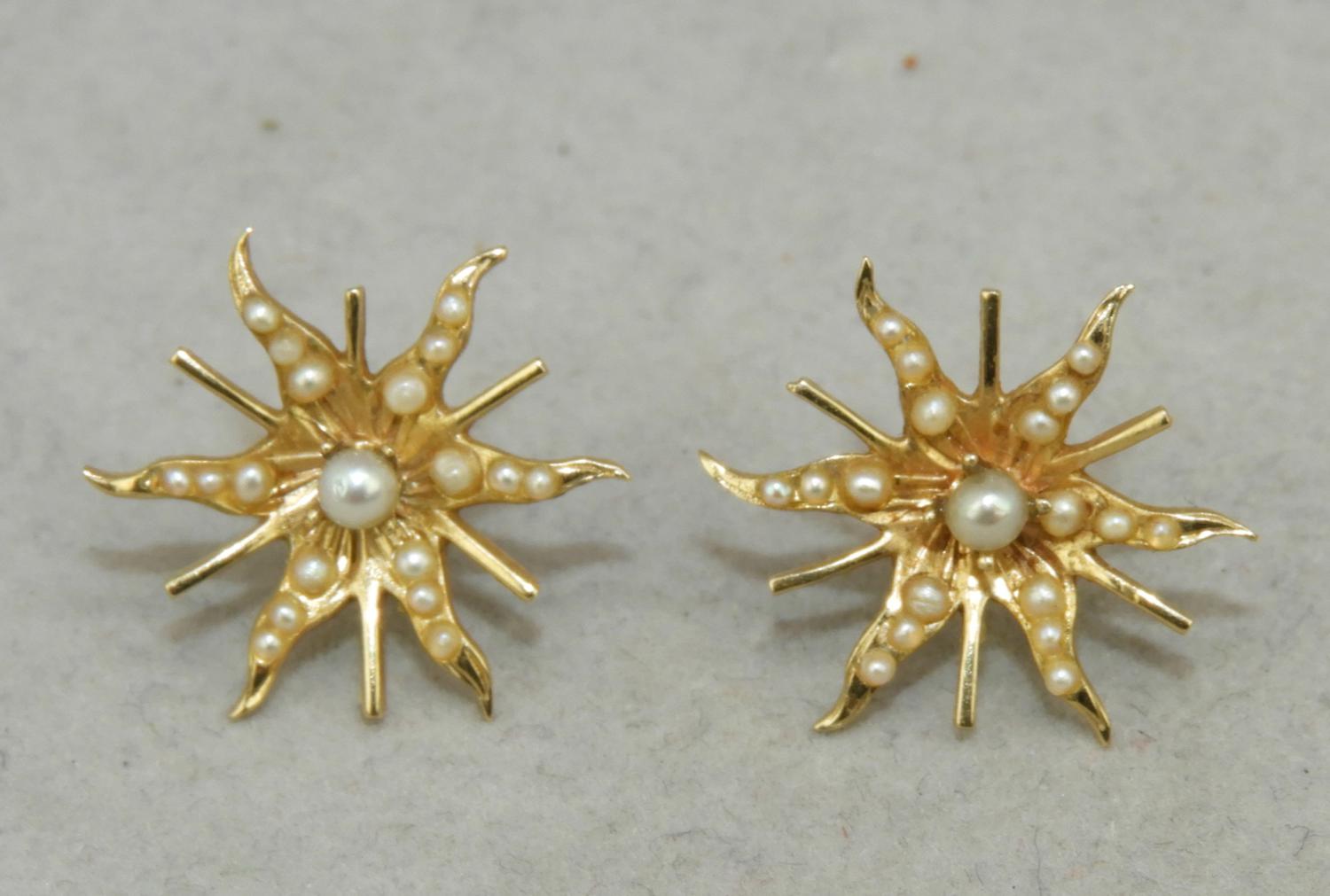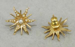 late 19th century 10k yellow gold seed pearl earrings