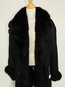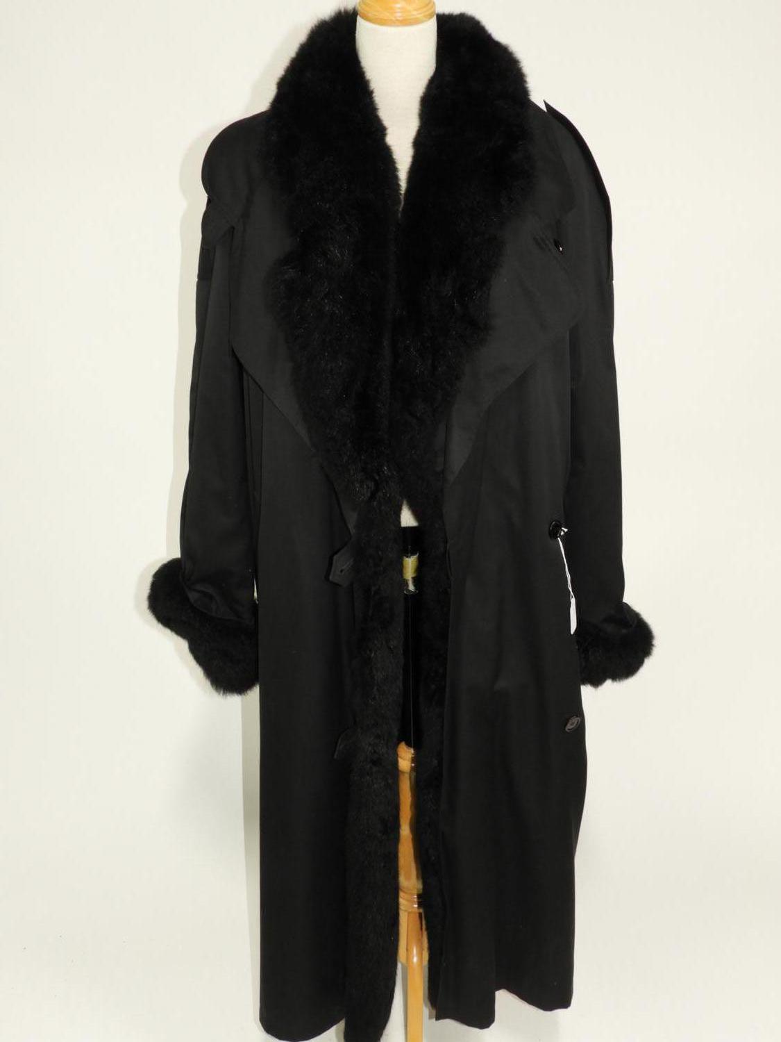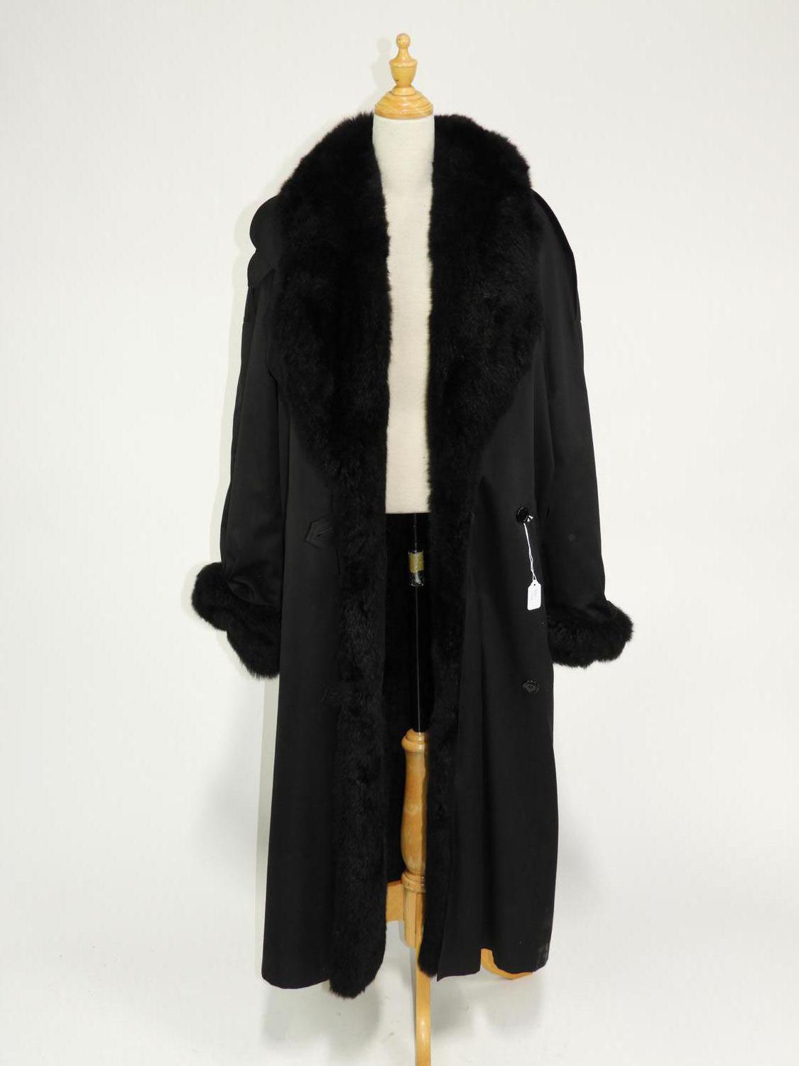 full length black oppossum lined trenchcoat, detatchable fur liner, large
