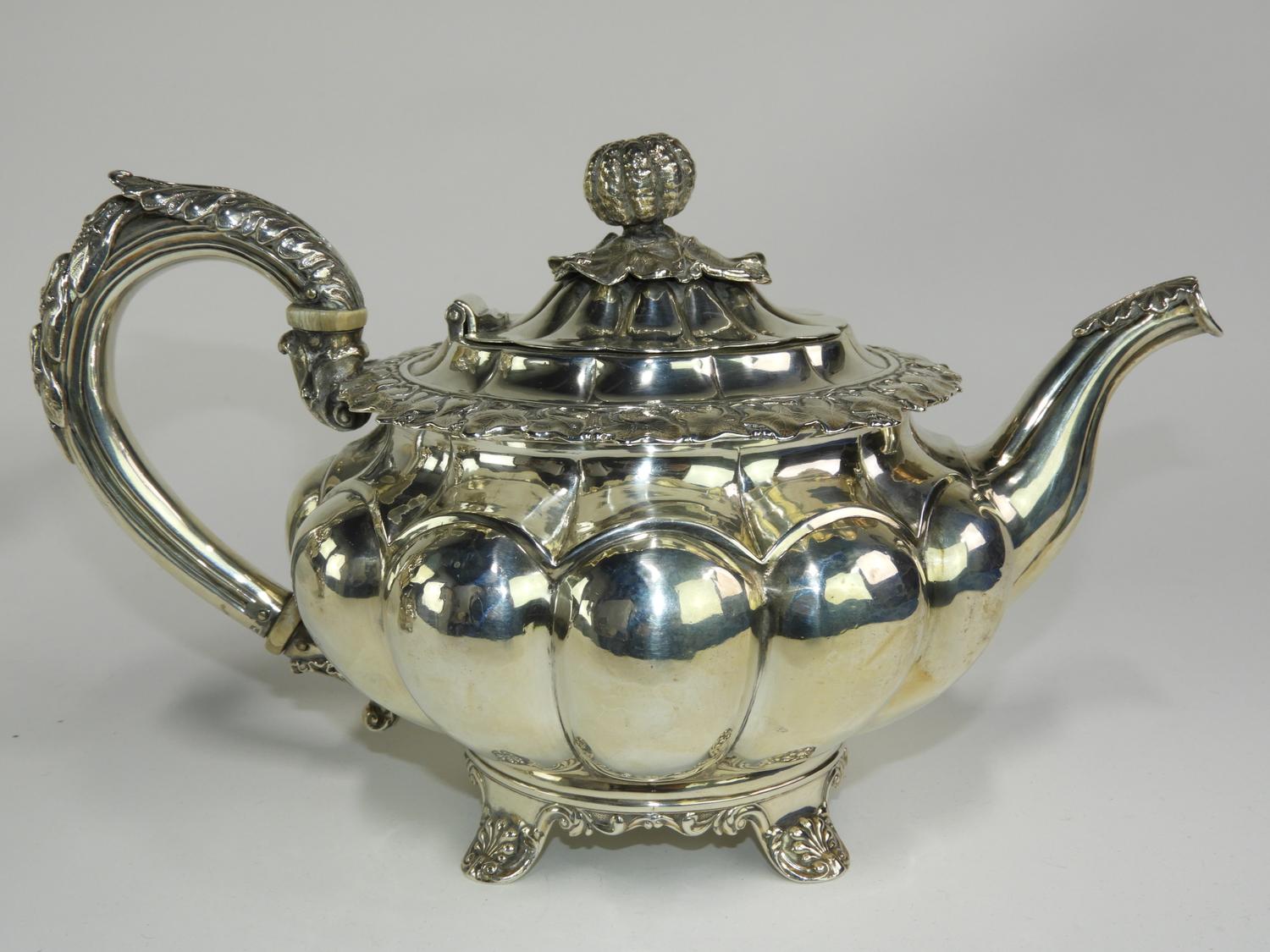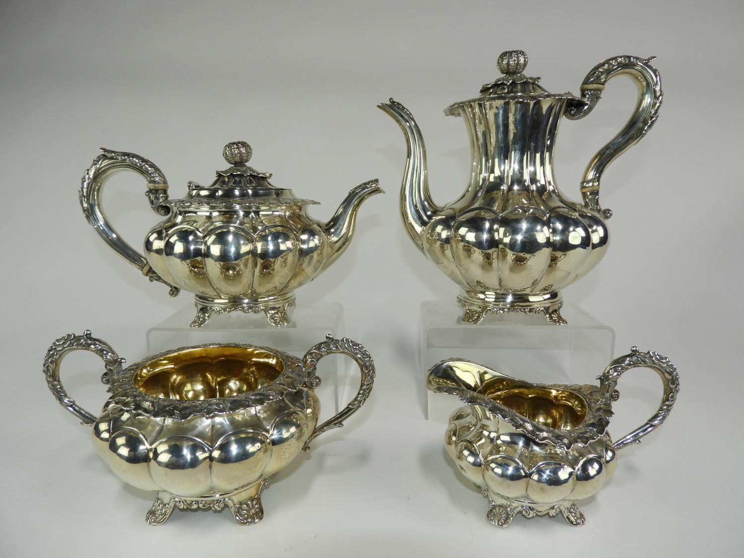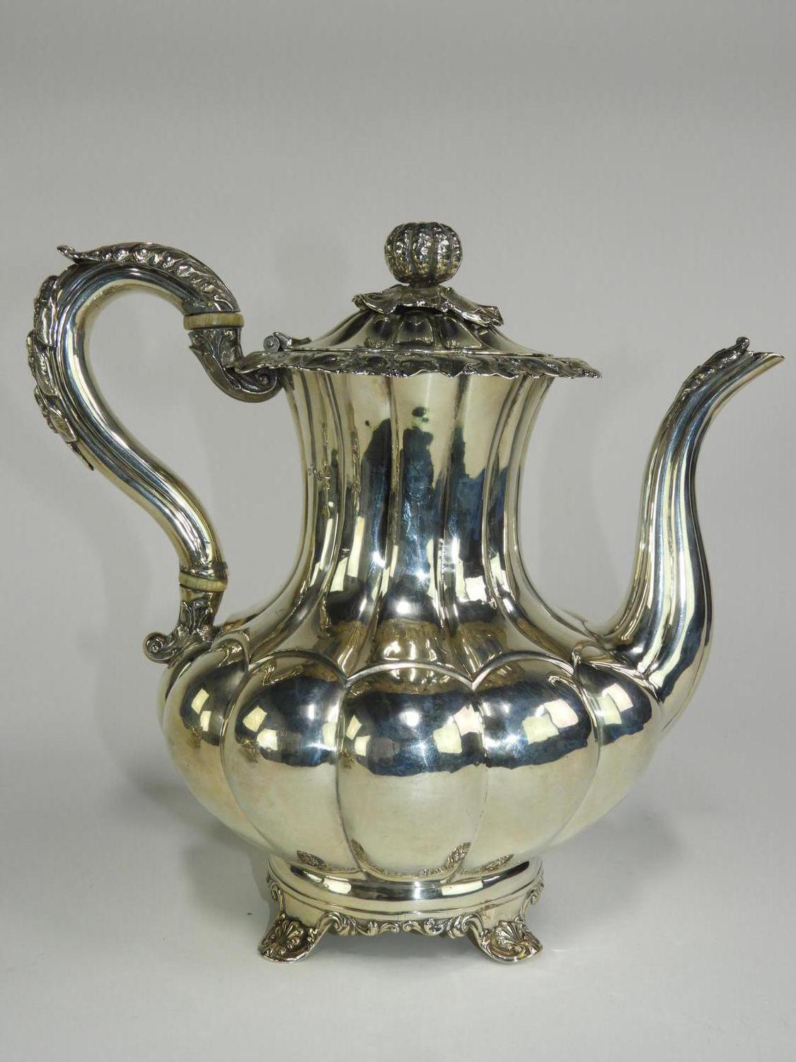 early victorian 4pc sterling silver tea and coffee service, john walton, newcastle d.1857-1861, 2459tgw