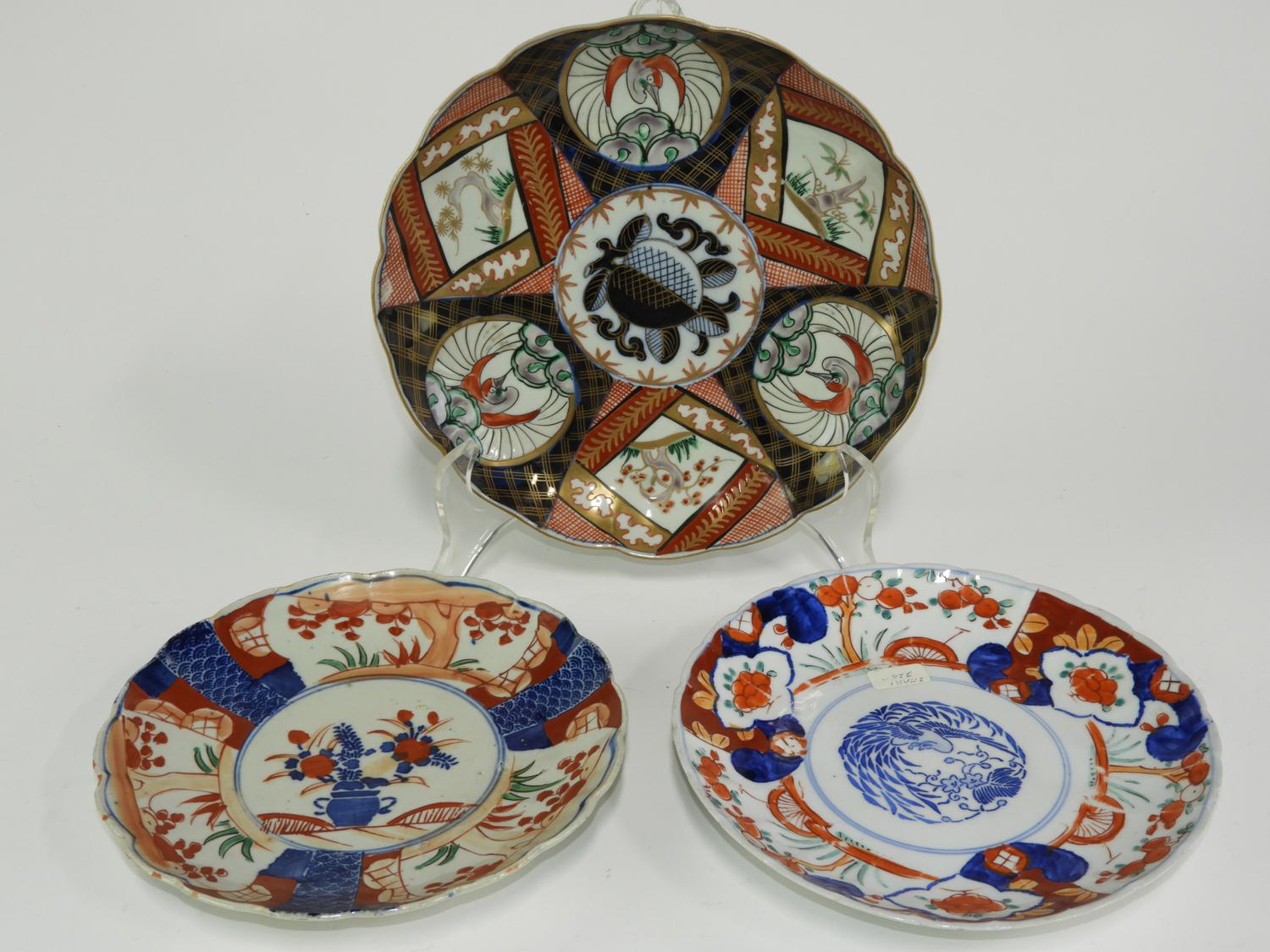 three imari plates, dia. 9 1/2" and smaller