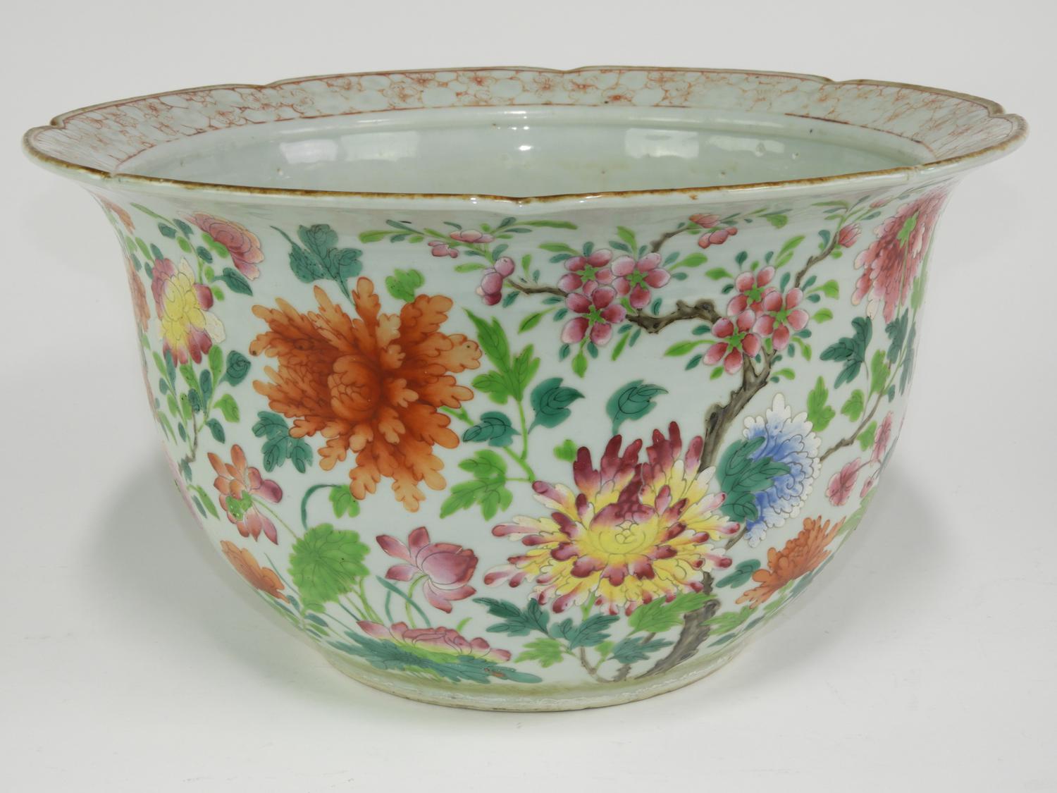 chinese hand painted jardinere, early 20th century, 8 3/4" x 15 3/4"
