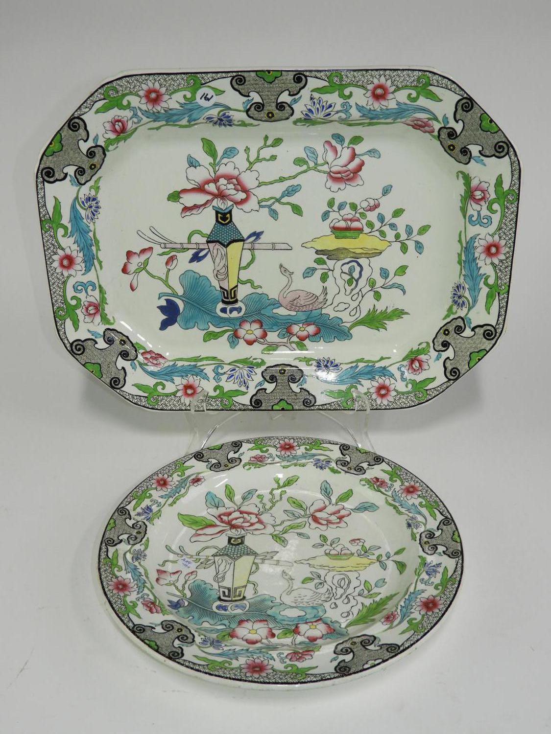 graduated pair of mason's ironstone platters, 19" x 14" and smaller