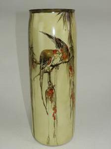 lennox belleek art deco hand painted vase, american, early 20th century, ht. 16"
