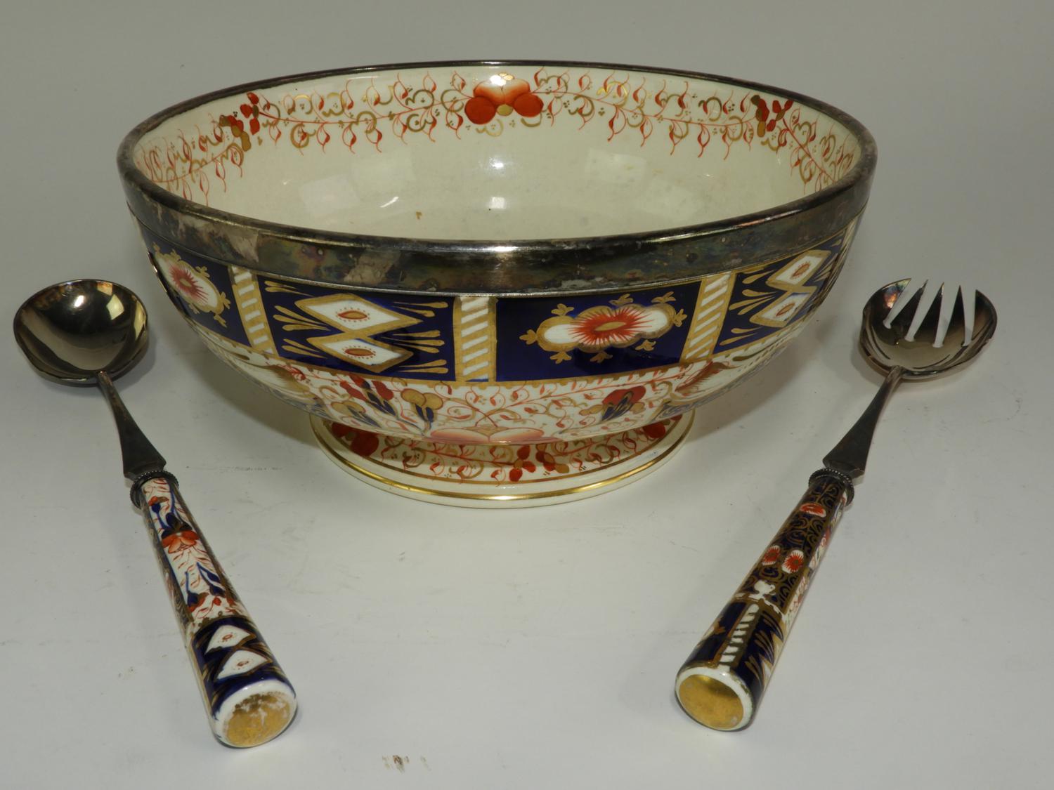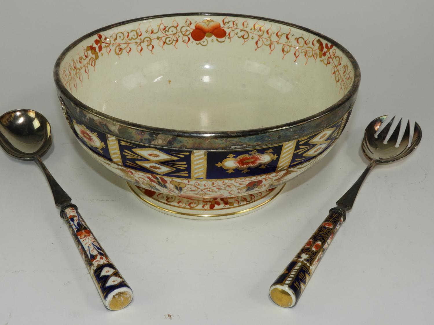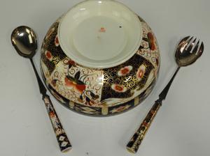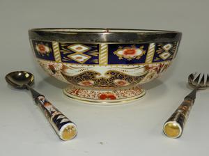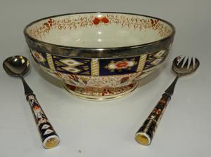 davenport imari silver rim salad bowl with servers, dia. 10 1/2"