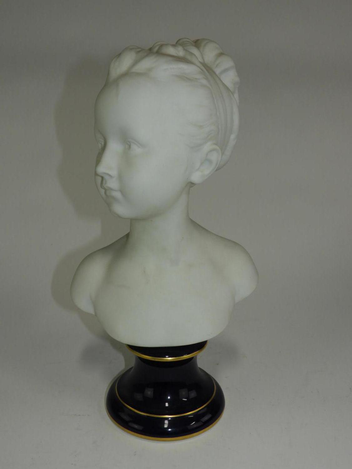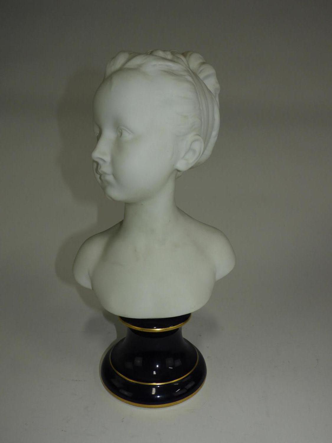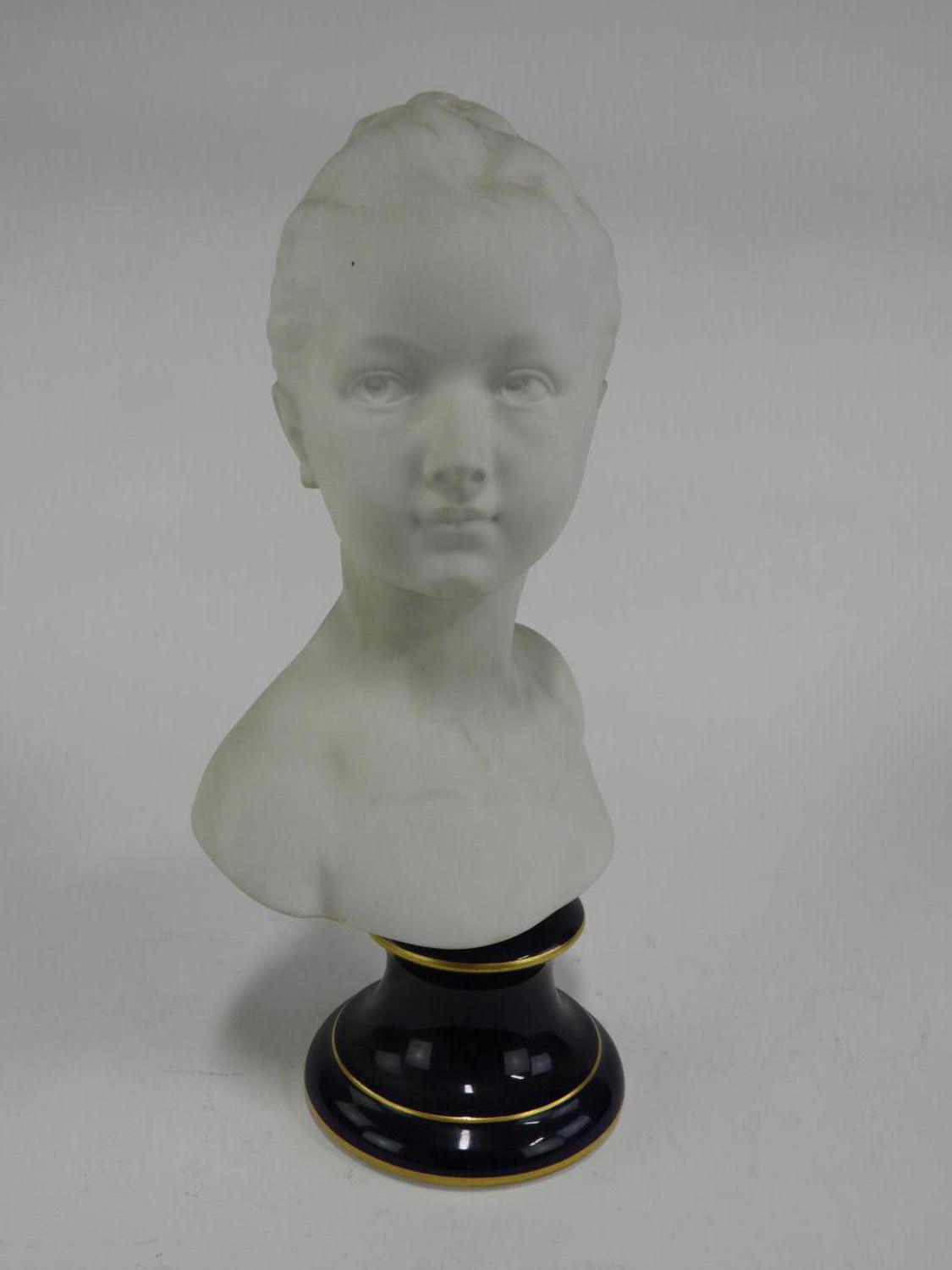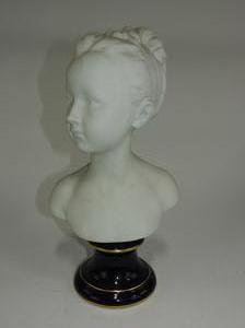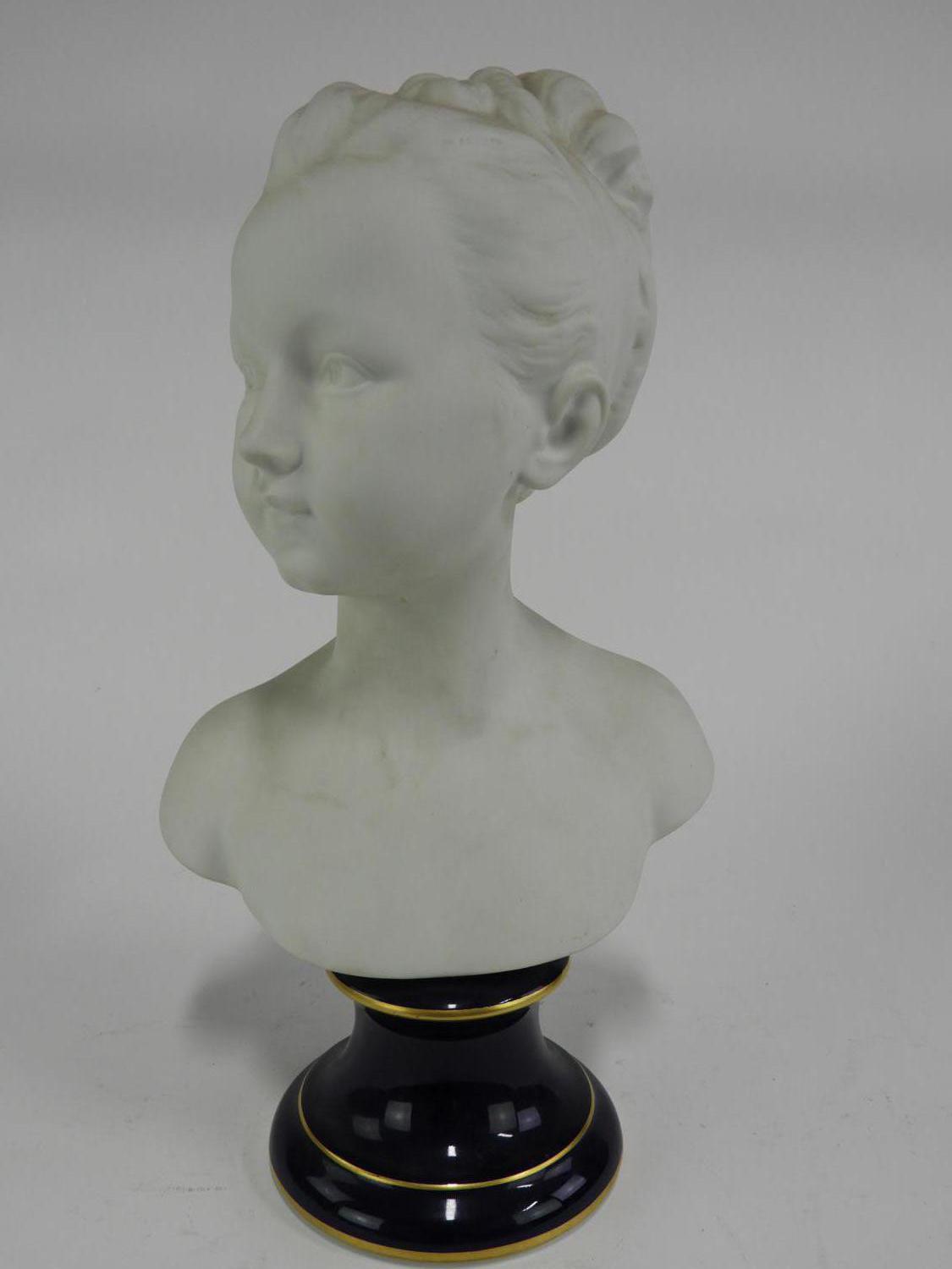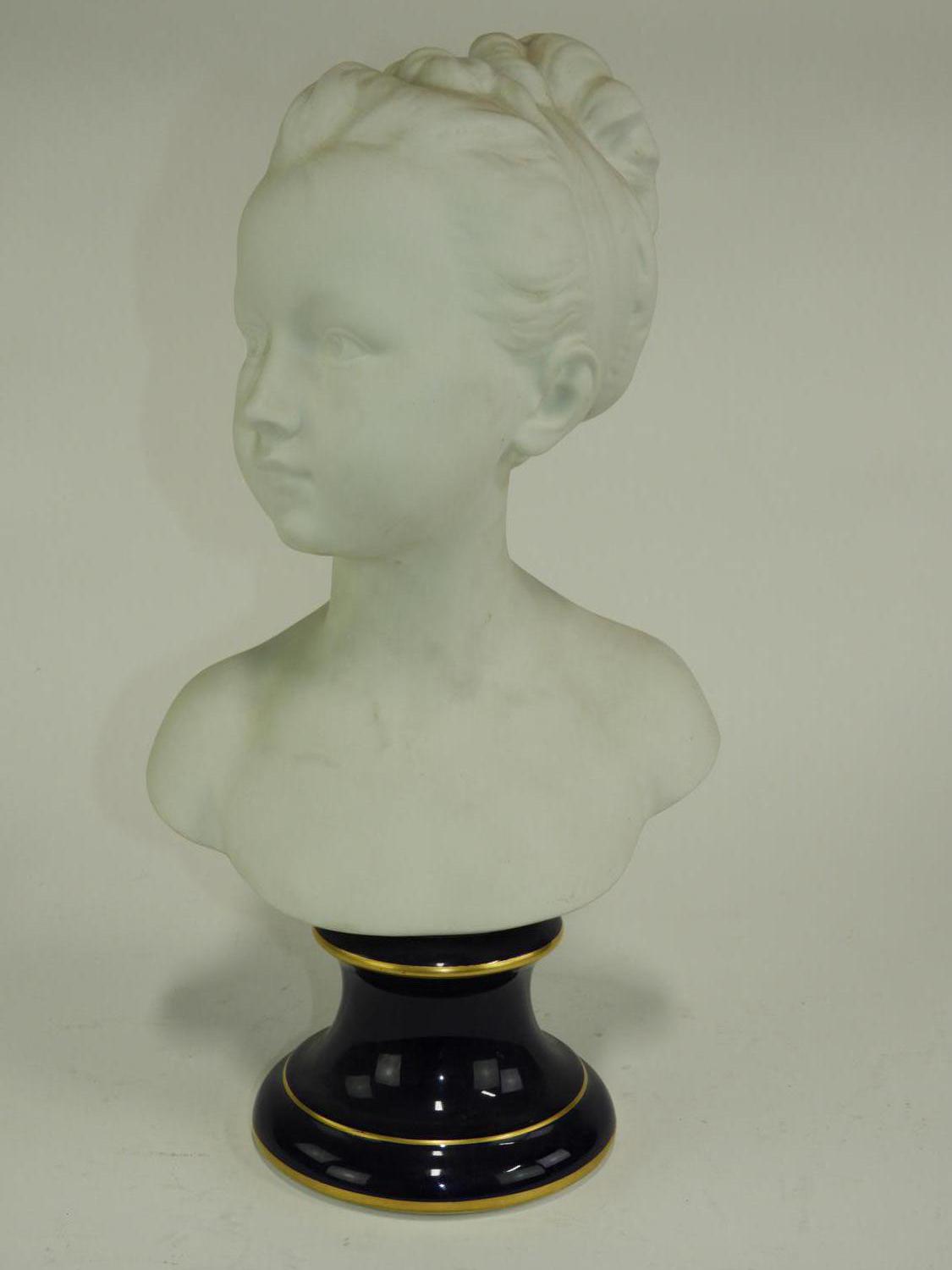 french porcelain bust of a girl on cobalt base, ht. 15"