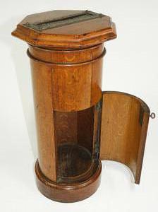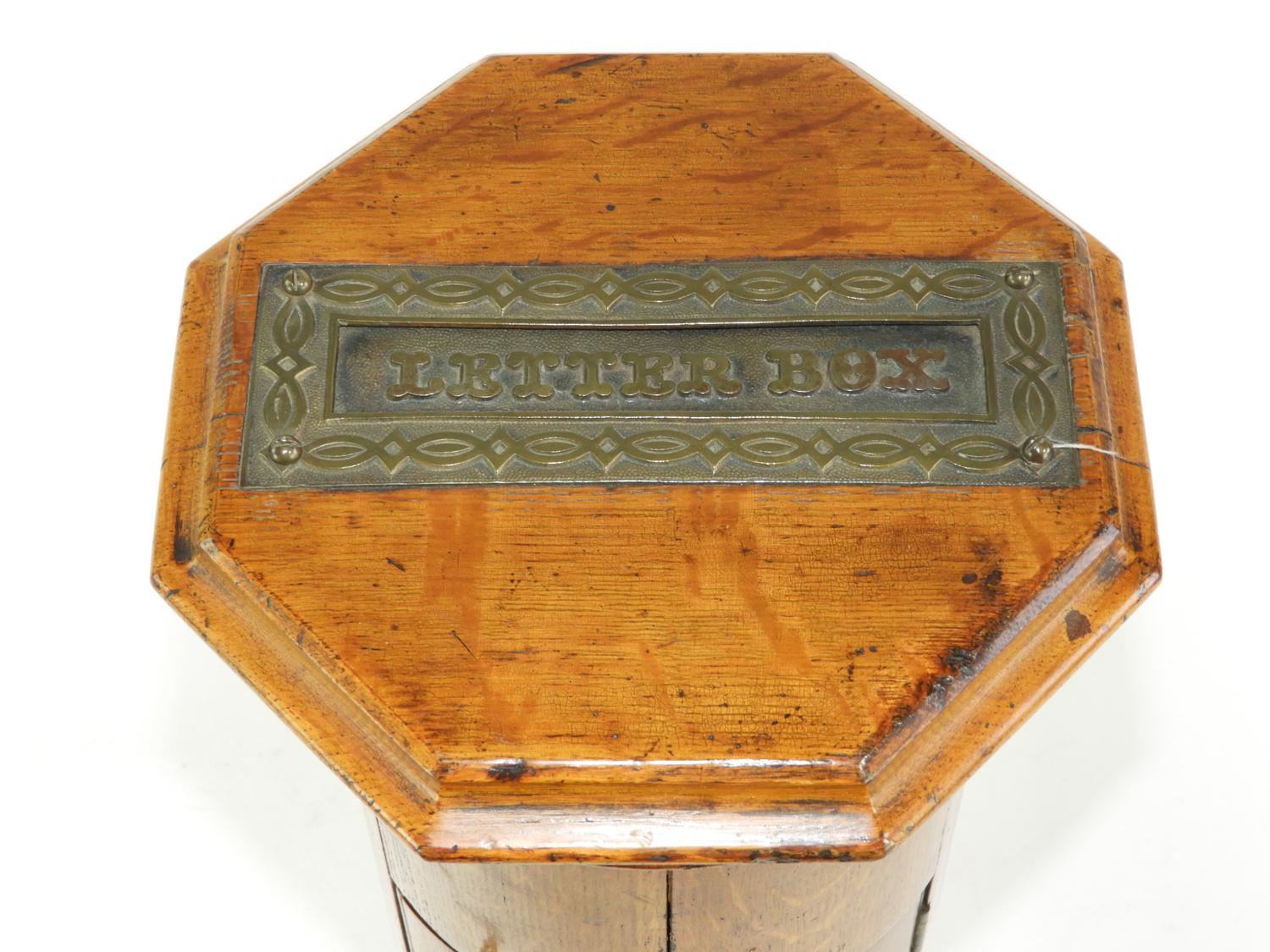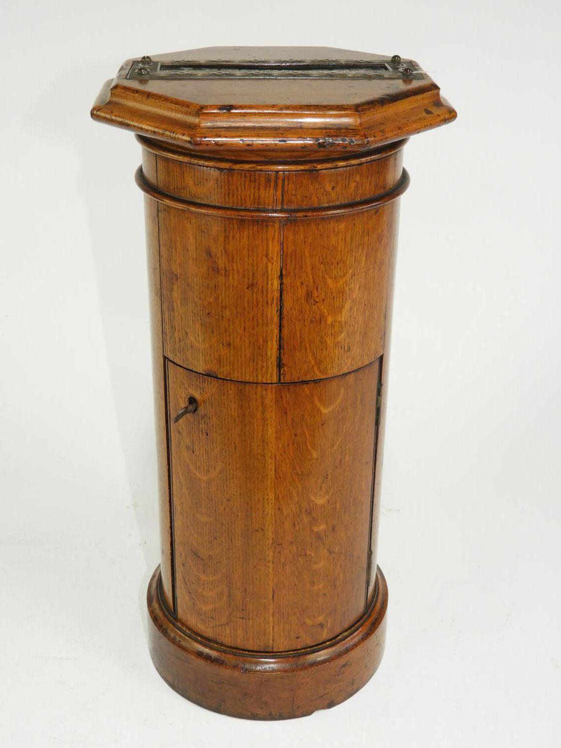 oak cylindrical letter box, late 19th century, ht. 15 1/2"