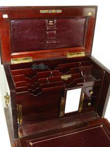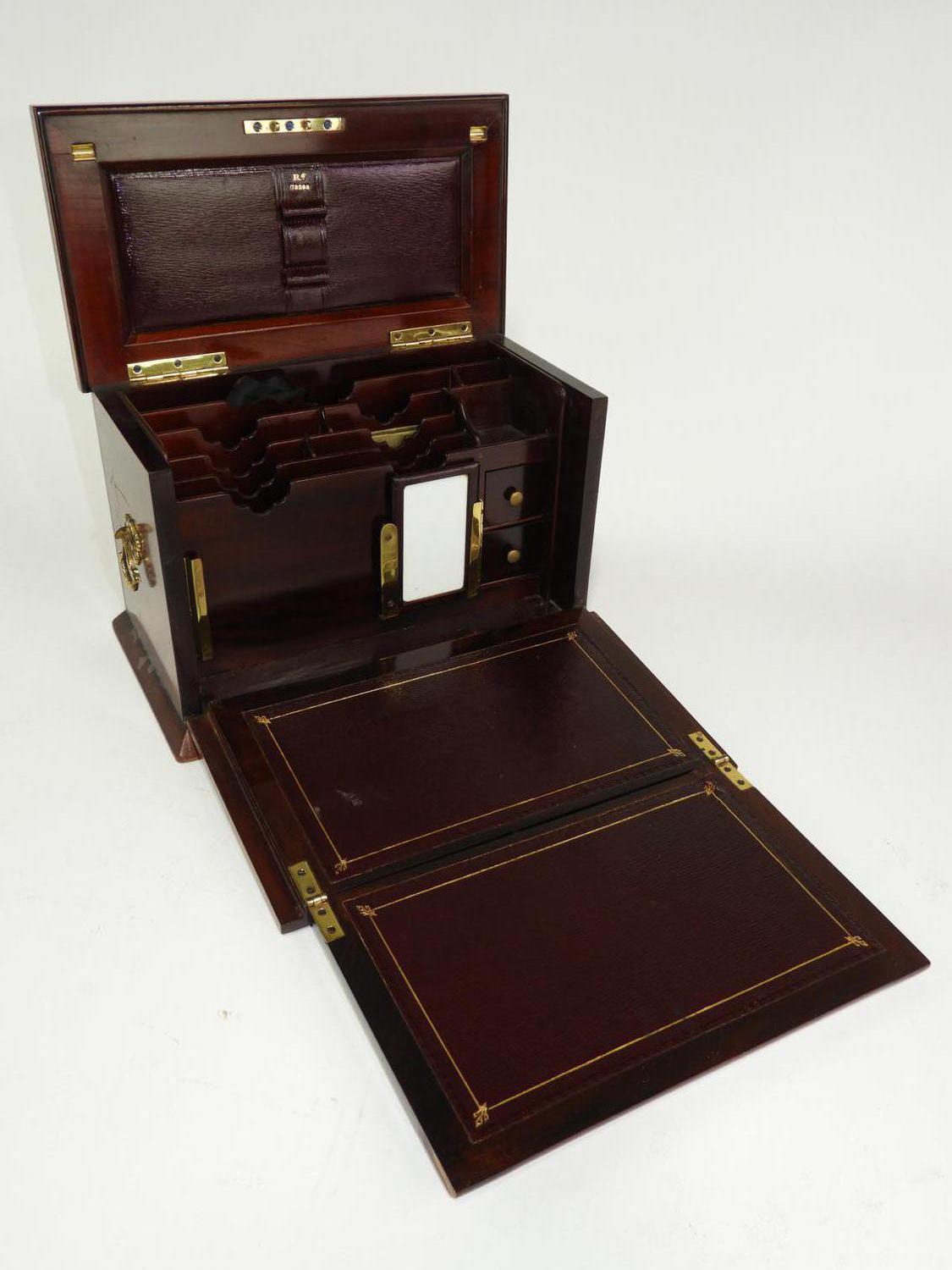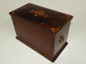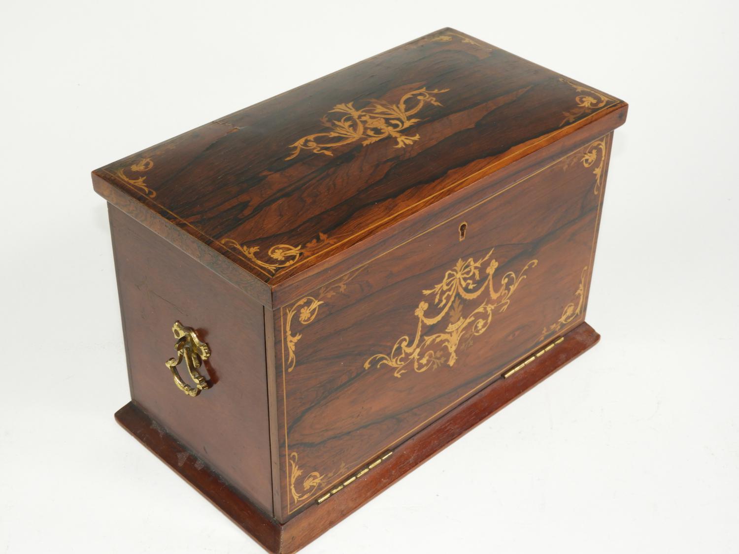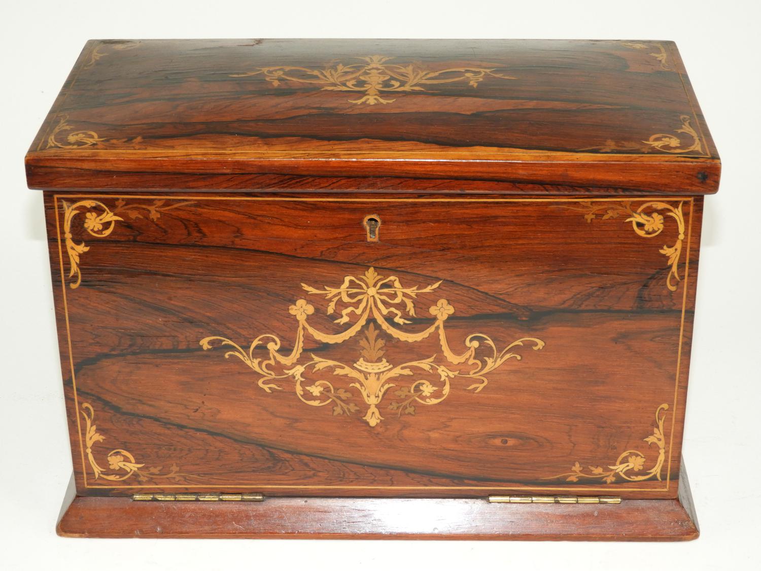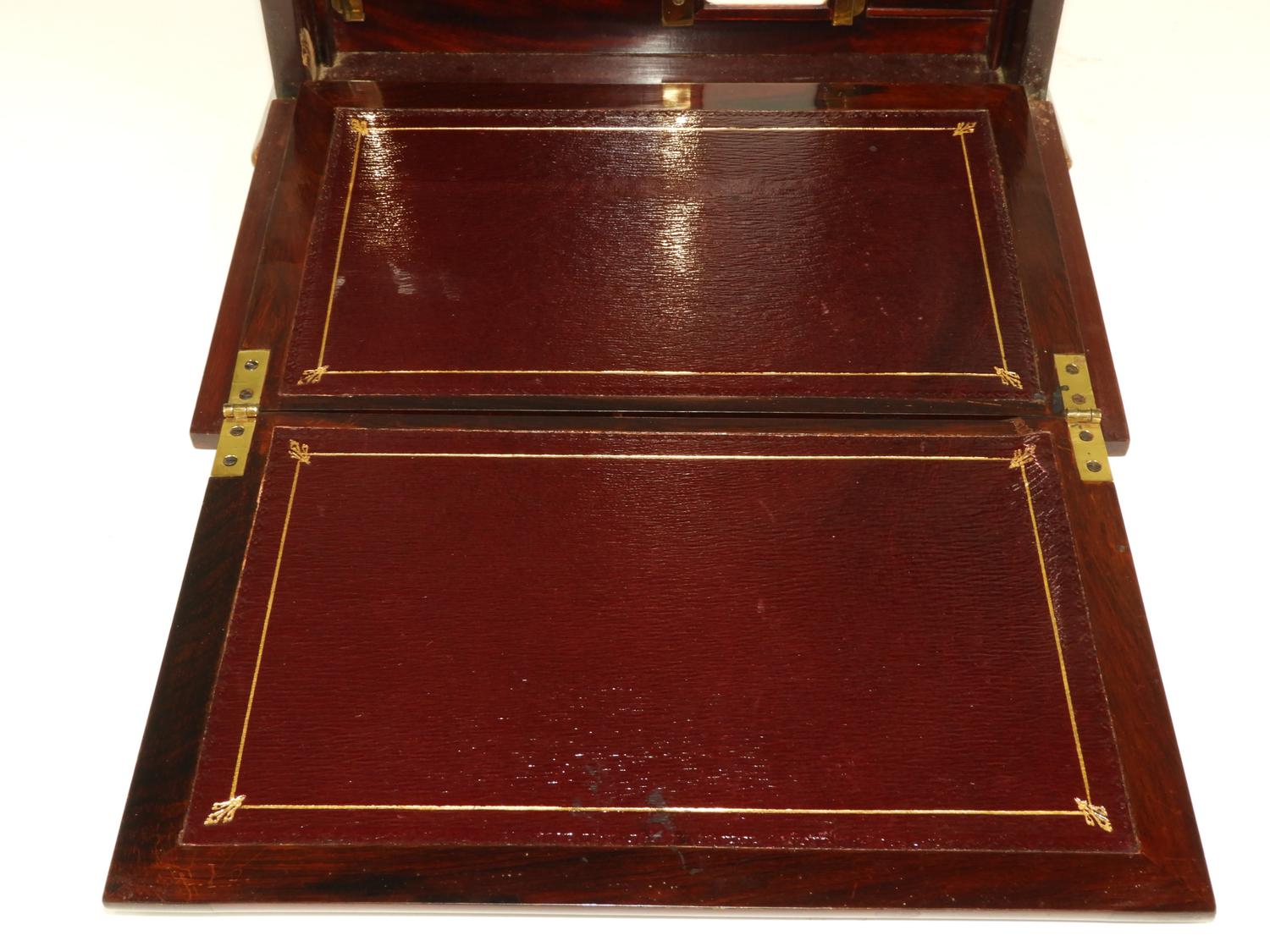 mid 19th century inlaid rosewood letter box, fitted interior, with inset leather surfaces, 8 1/2' x 12" x 7"