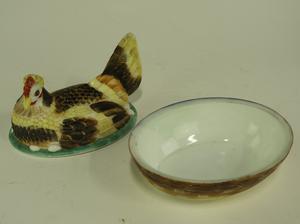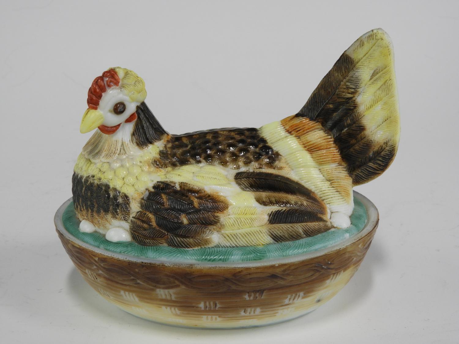 vintage painted milk glass hen on nest, 6" x 7 1/2" x 5 1/2"