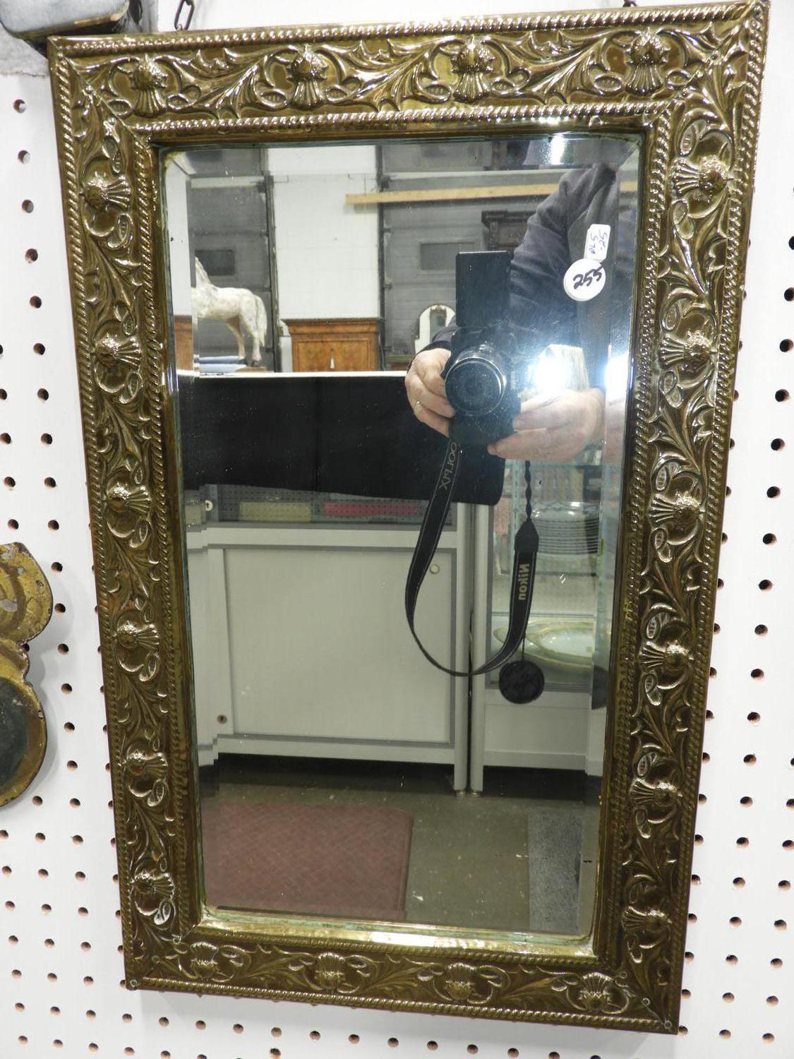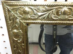 thistle motif brass framed mirror, 21" x 13"
