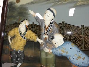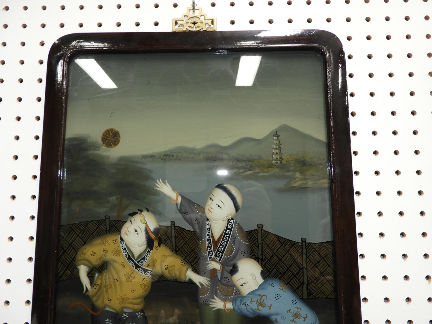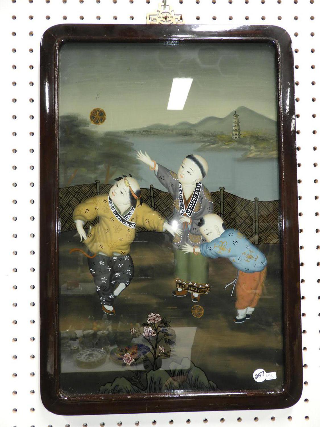 chinese reverse painted on glass picture of childern playing, 22" x 14 1/2"