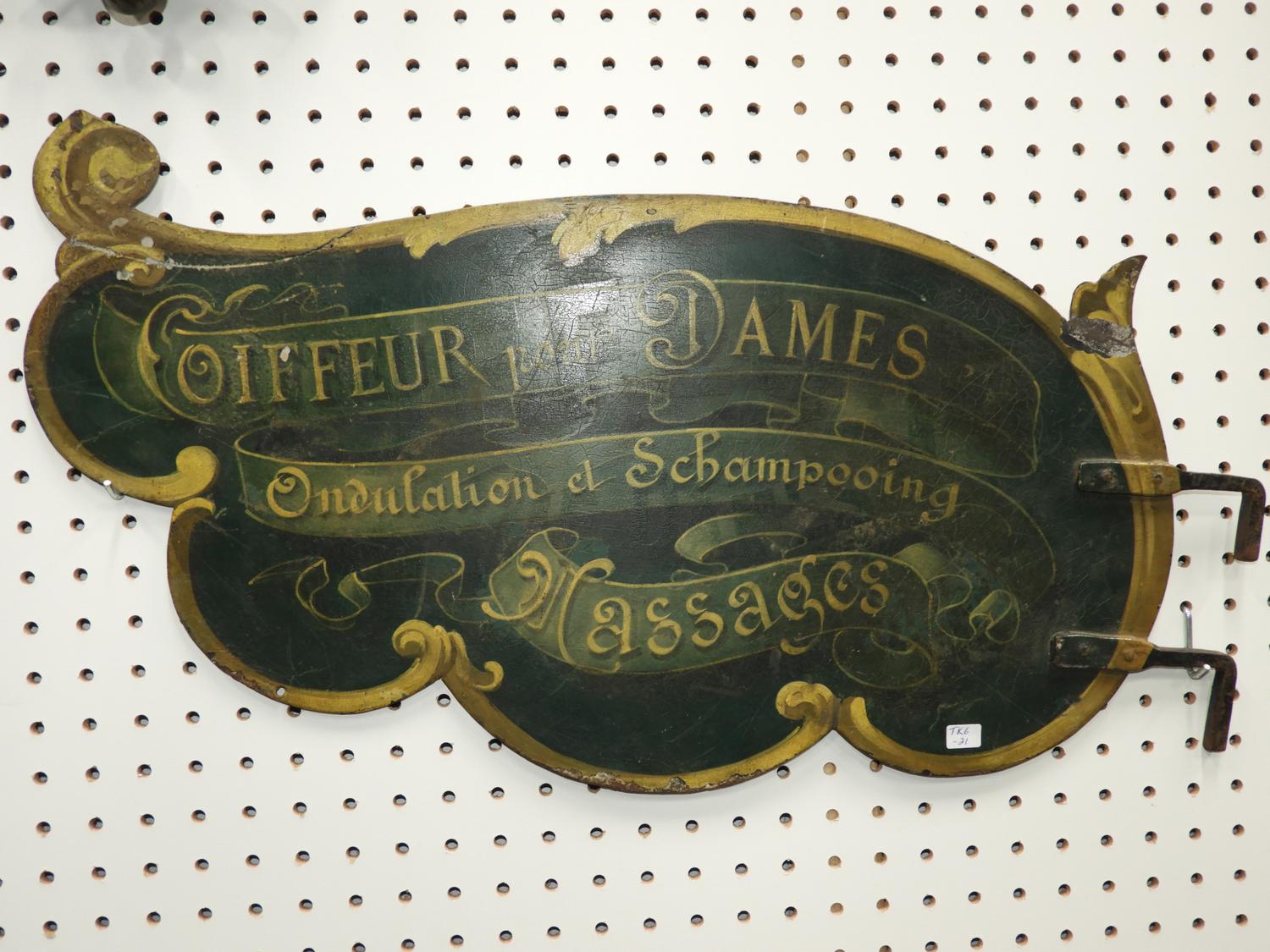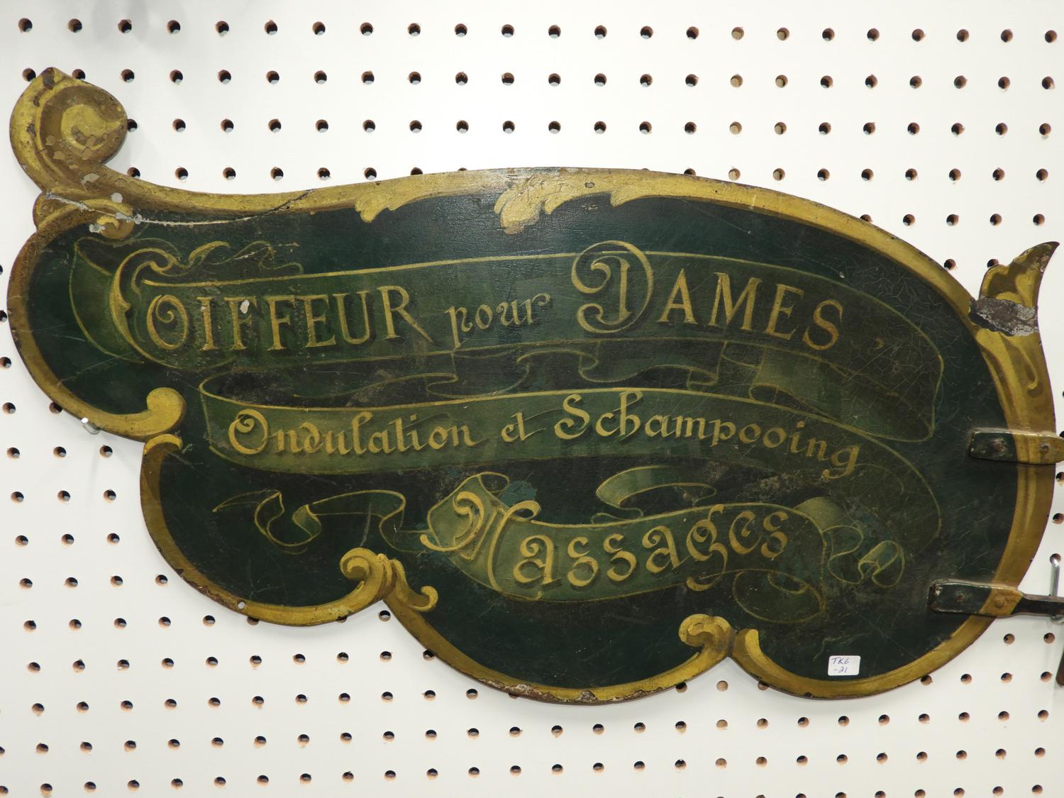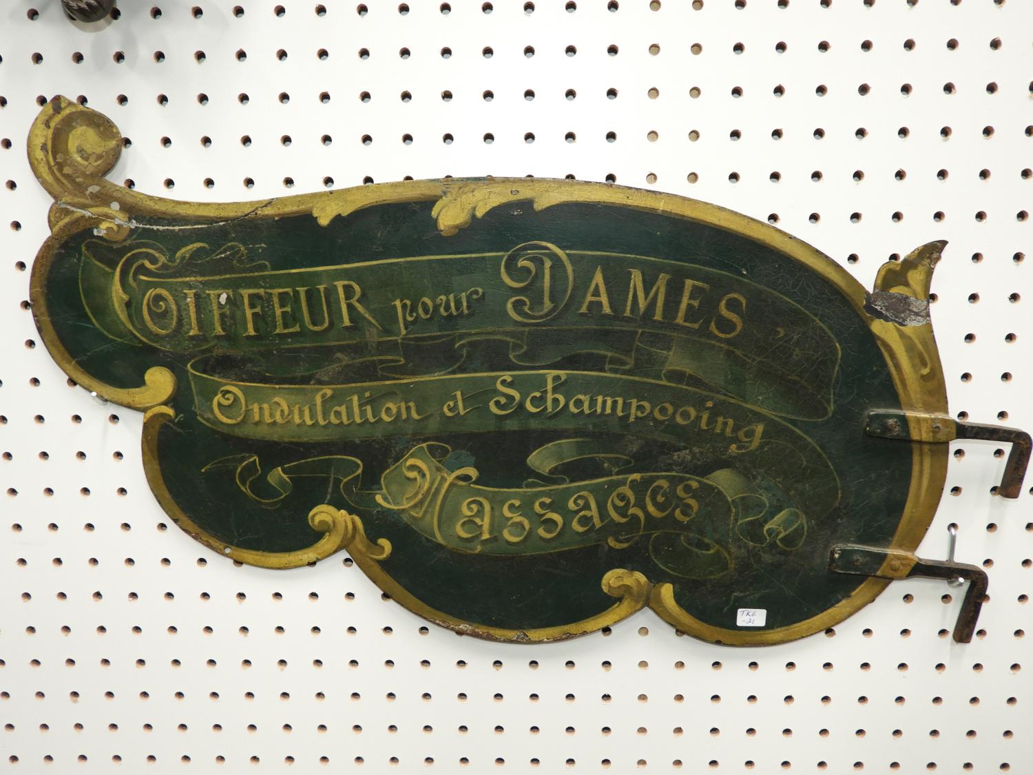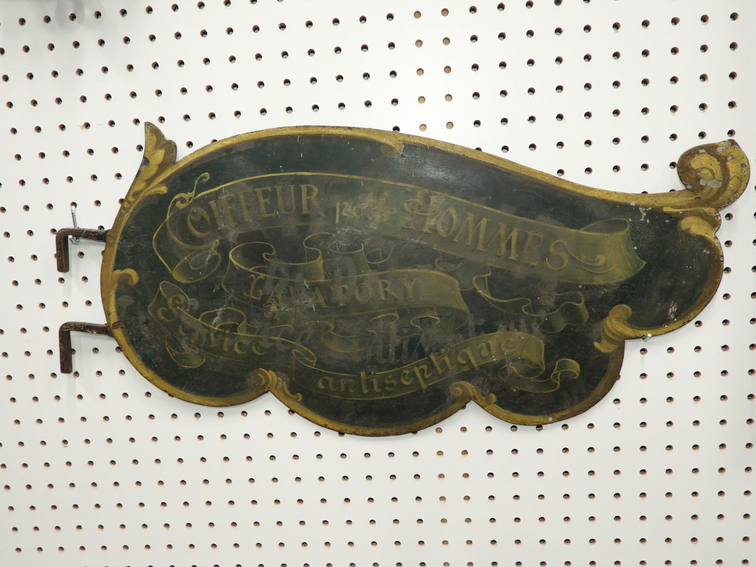 19th century french double sided enamel salon advertisement store sign, 26" x 13"