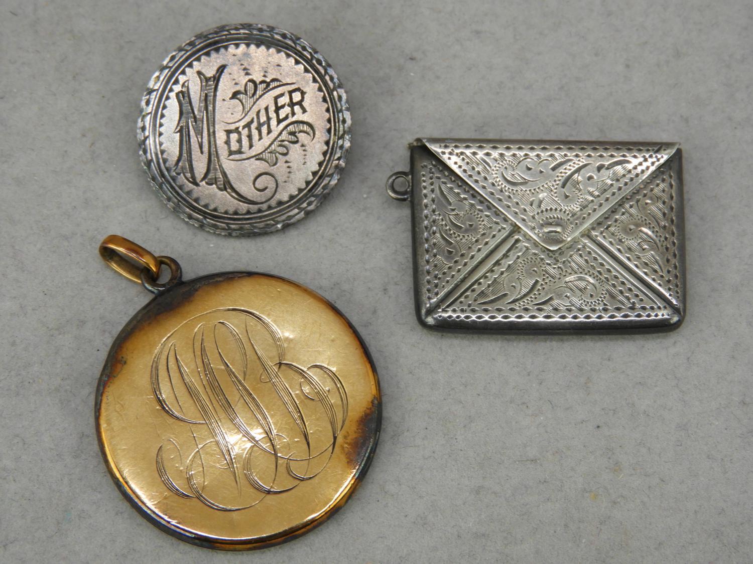 sterling silver letter pendant, mother brooch, gold filled victorian locket