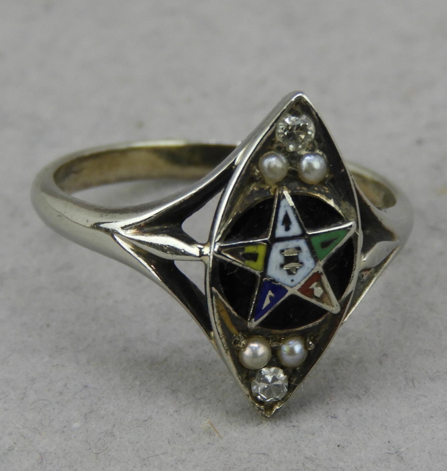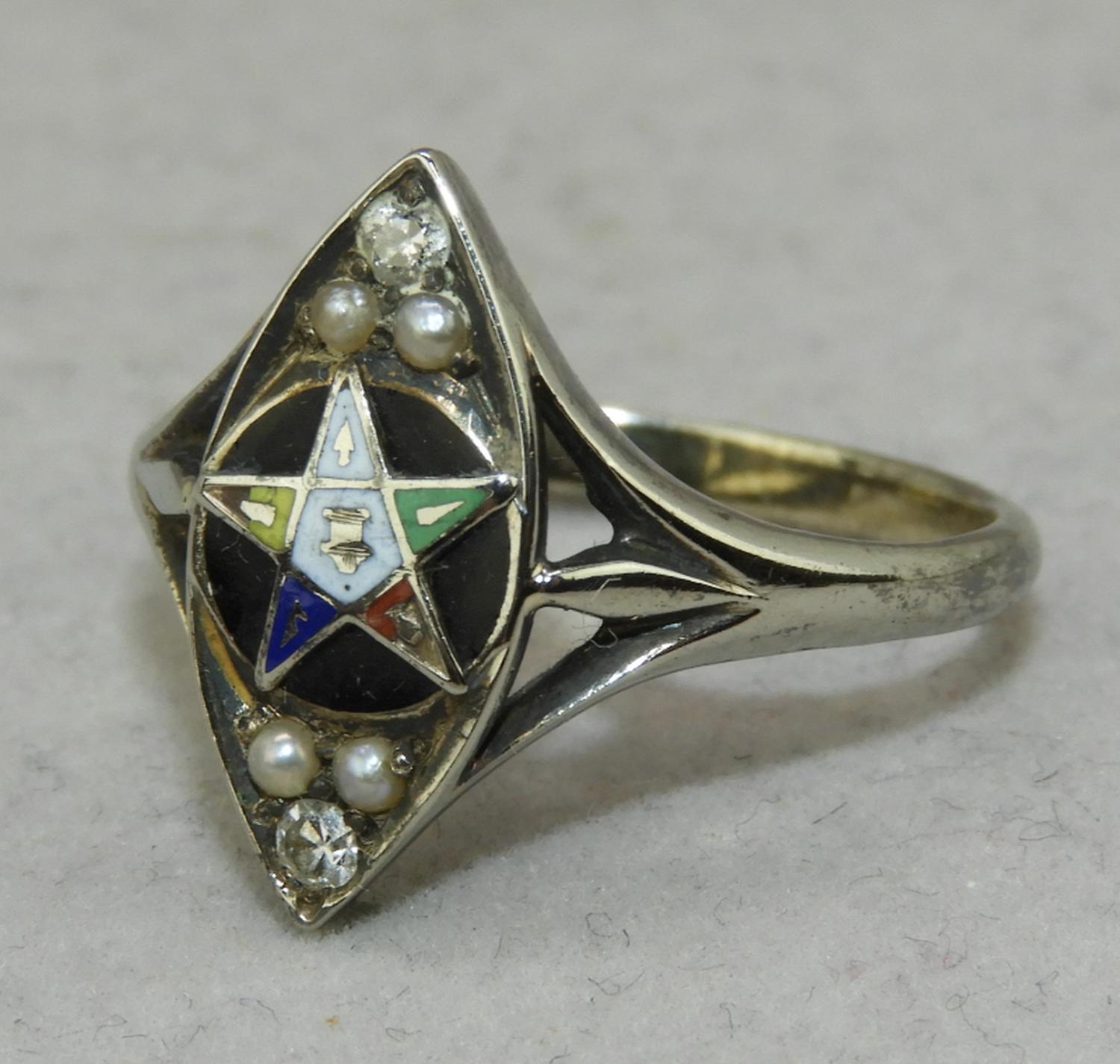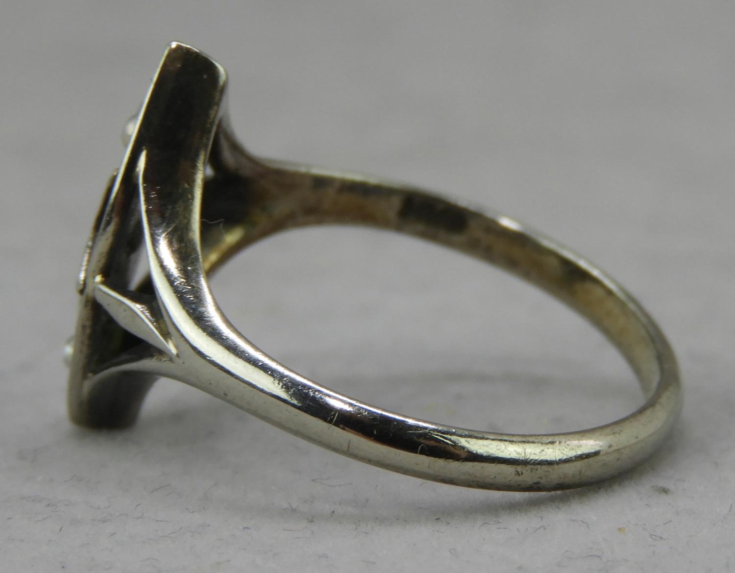 14k white gold enamel and diamond ring, size 7, 3.1grams