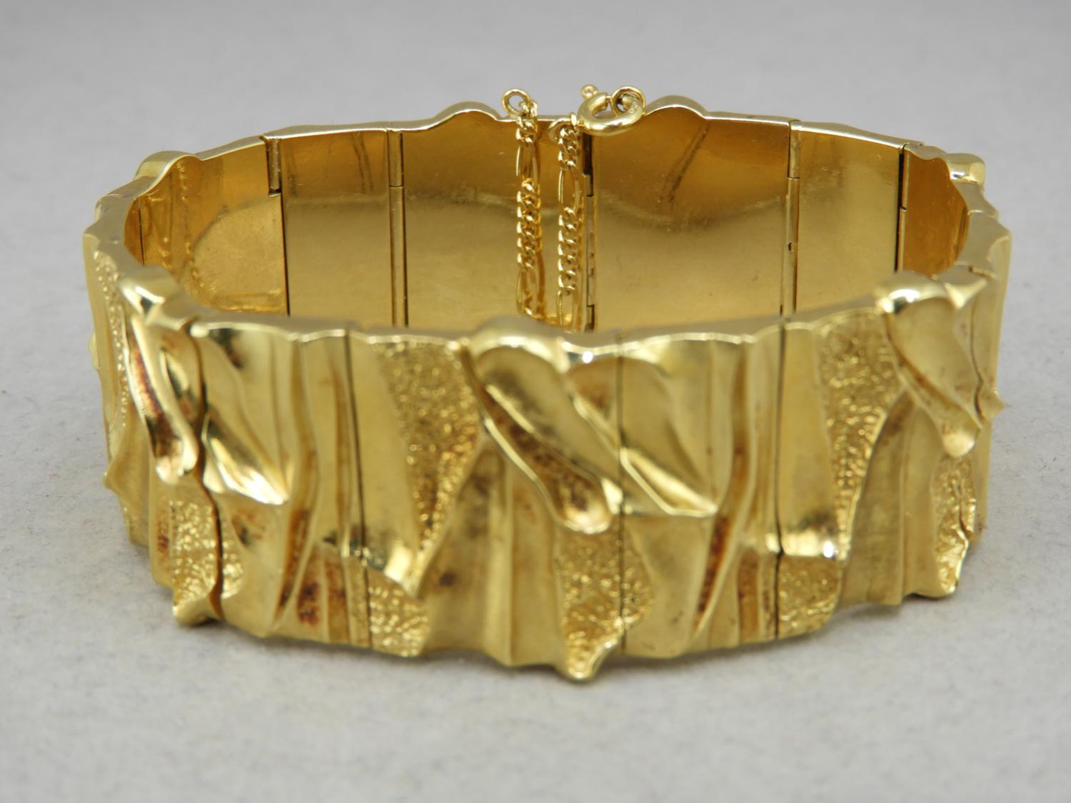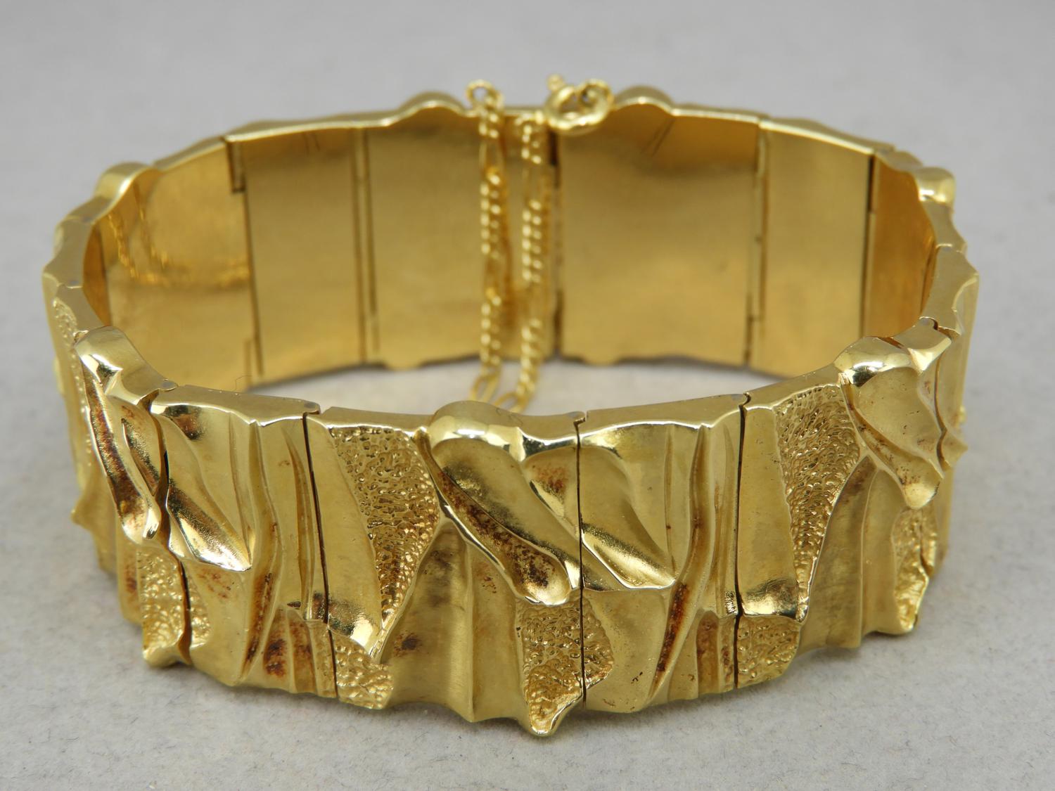 18k yellow gold wide panel bracelet, 7 1/4", weighing approx 100grams