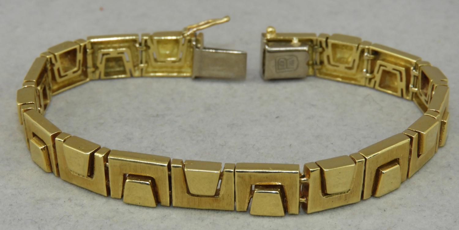 18k geometric bracelet, 7 1/2" in length, weighing approx 36grams