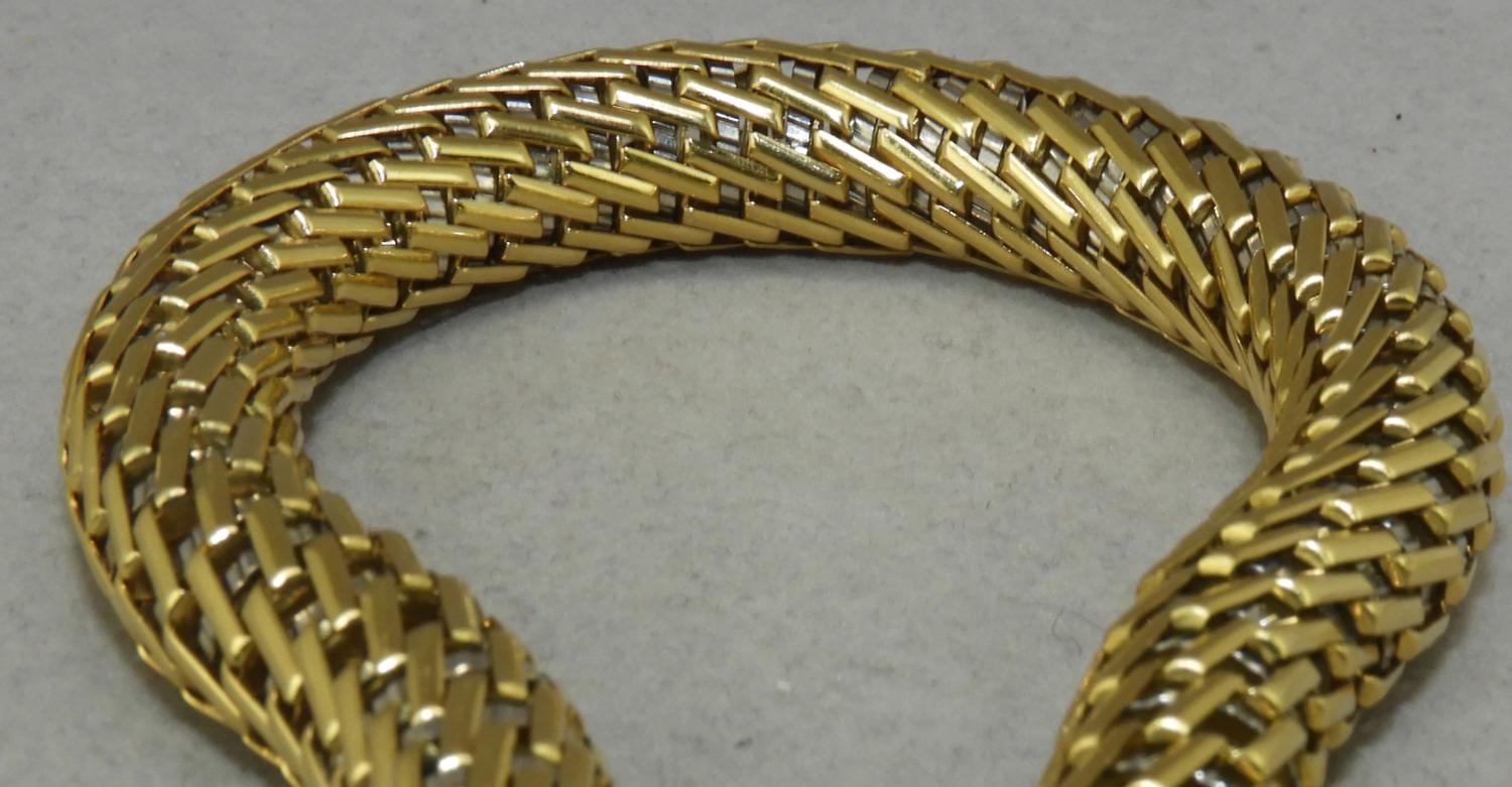 18k woven gold bracelet, 9", weighing approx 50 grams