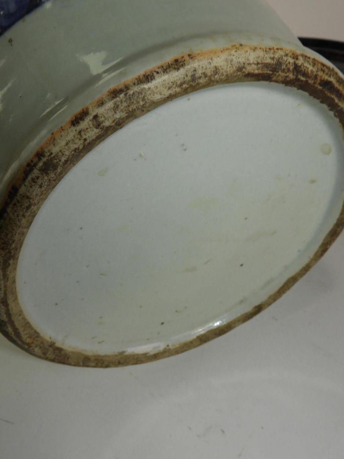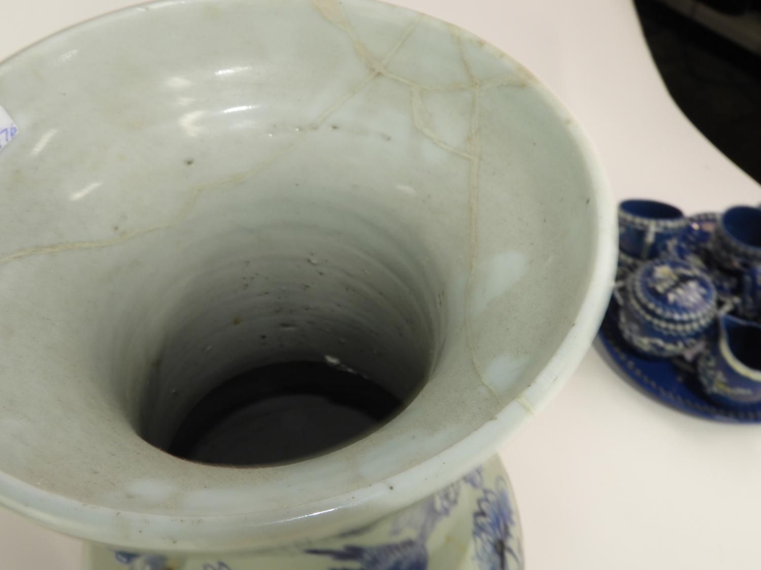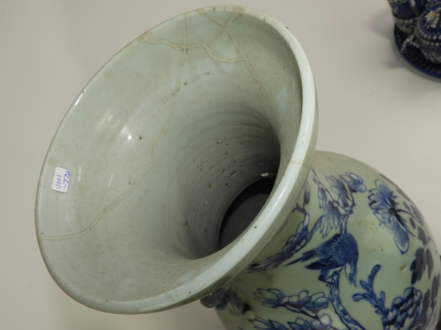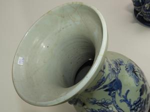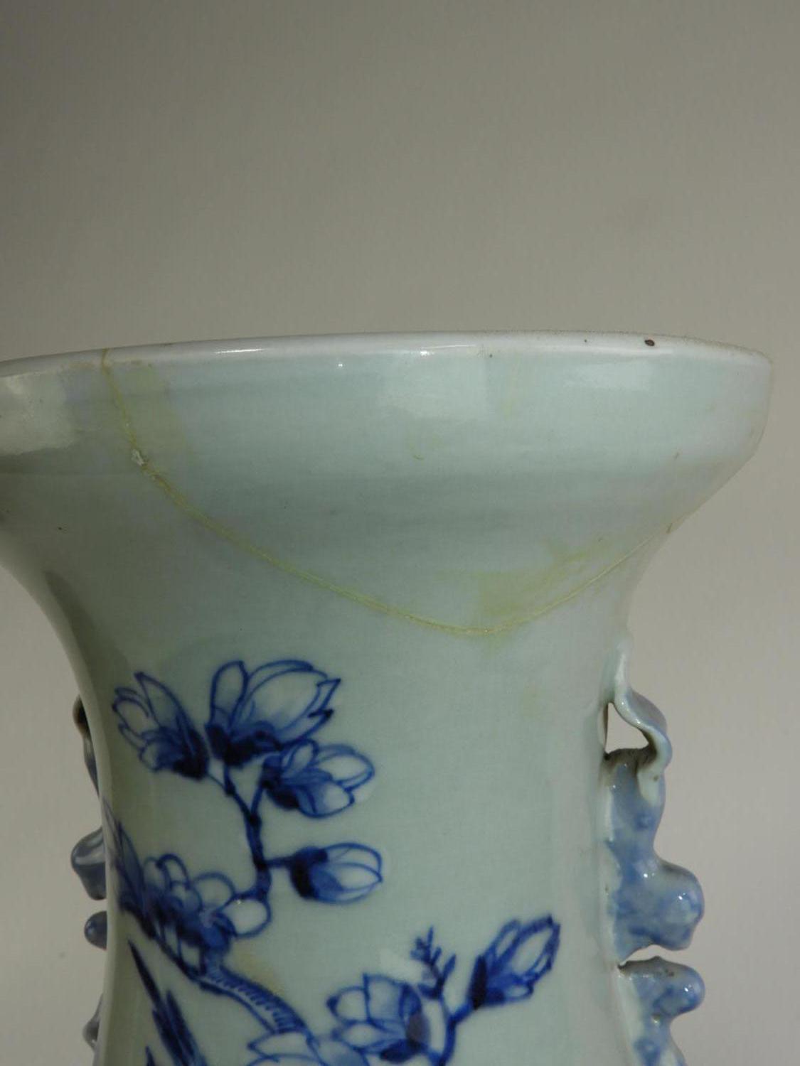 pair of chinese blue and white vases on stands, ht. 20 1/2", with restorations