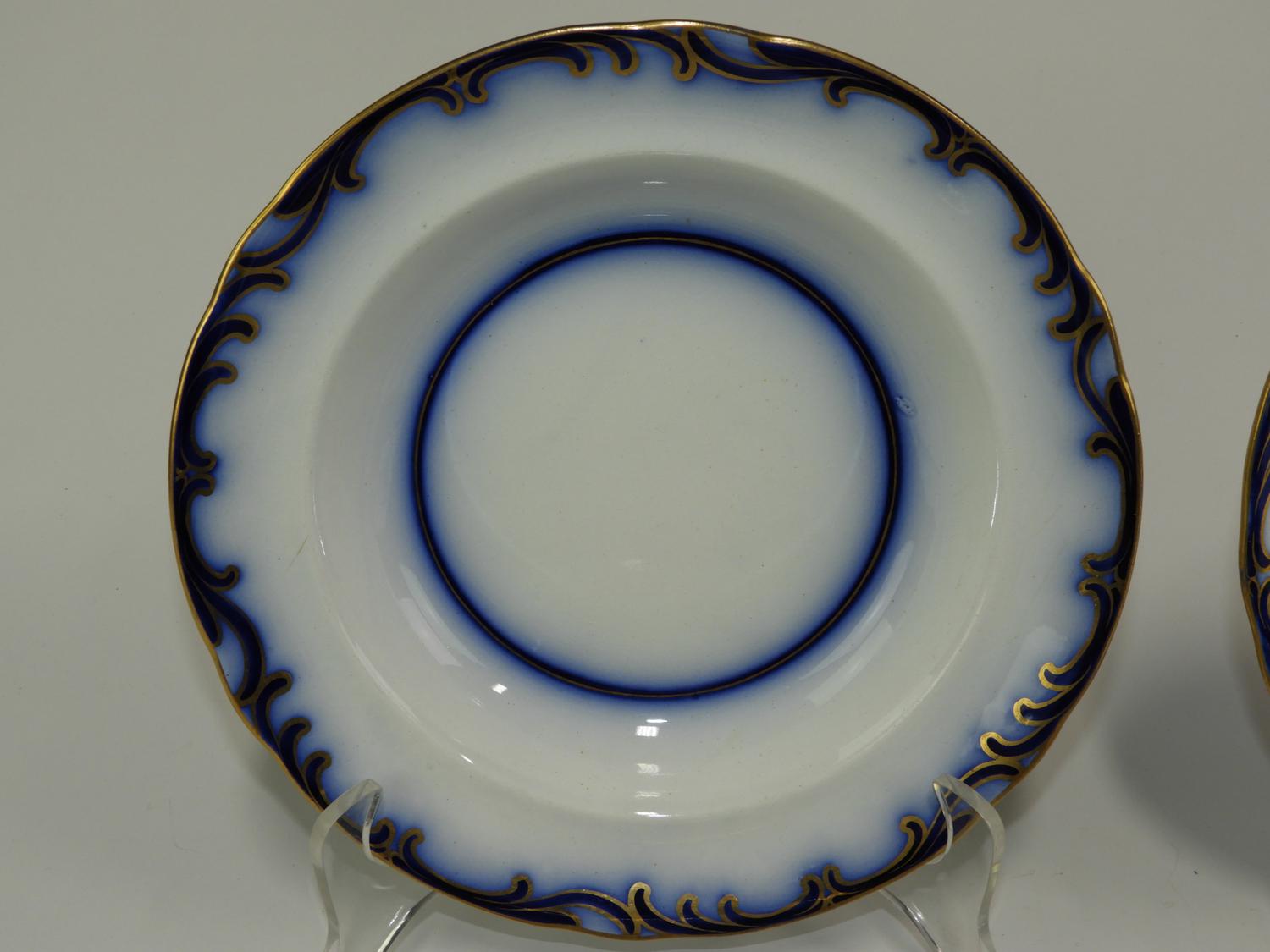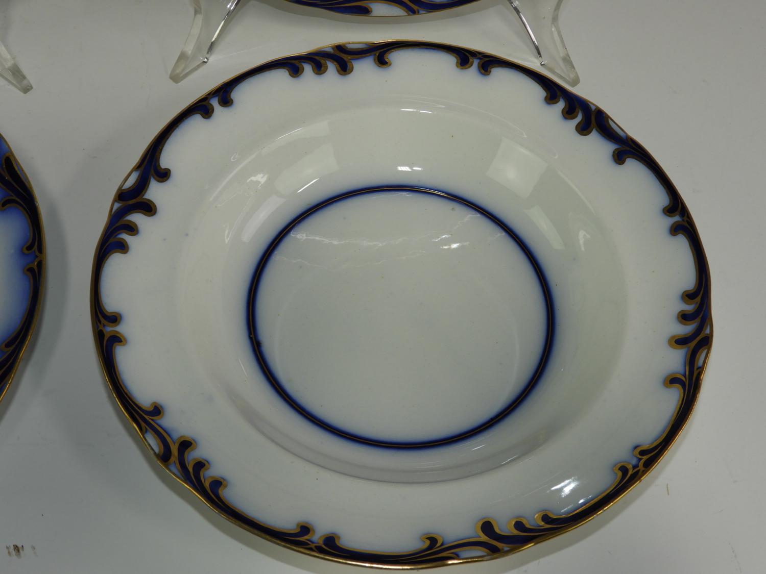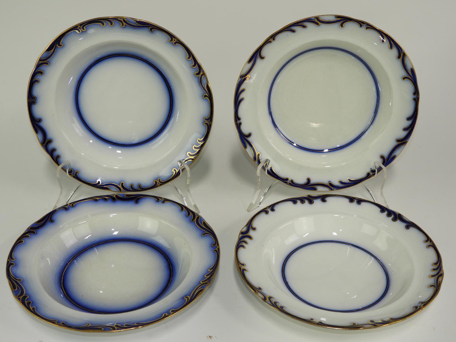 four davenport flow blue gilt decorated bowls, dia. 10 1/2"