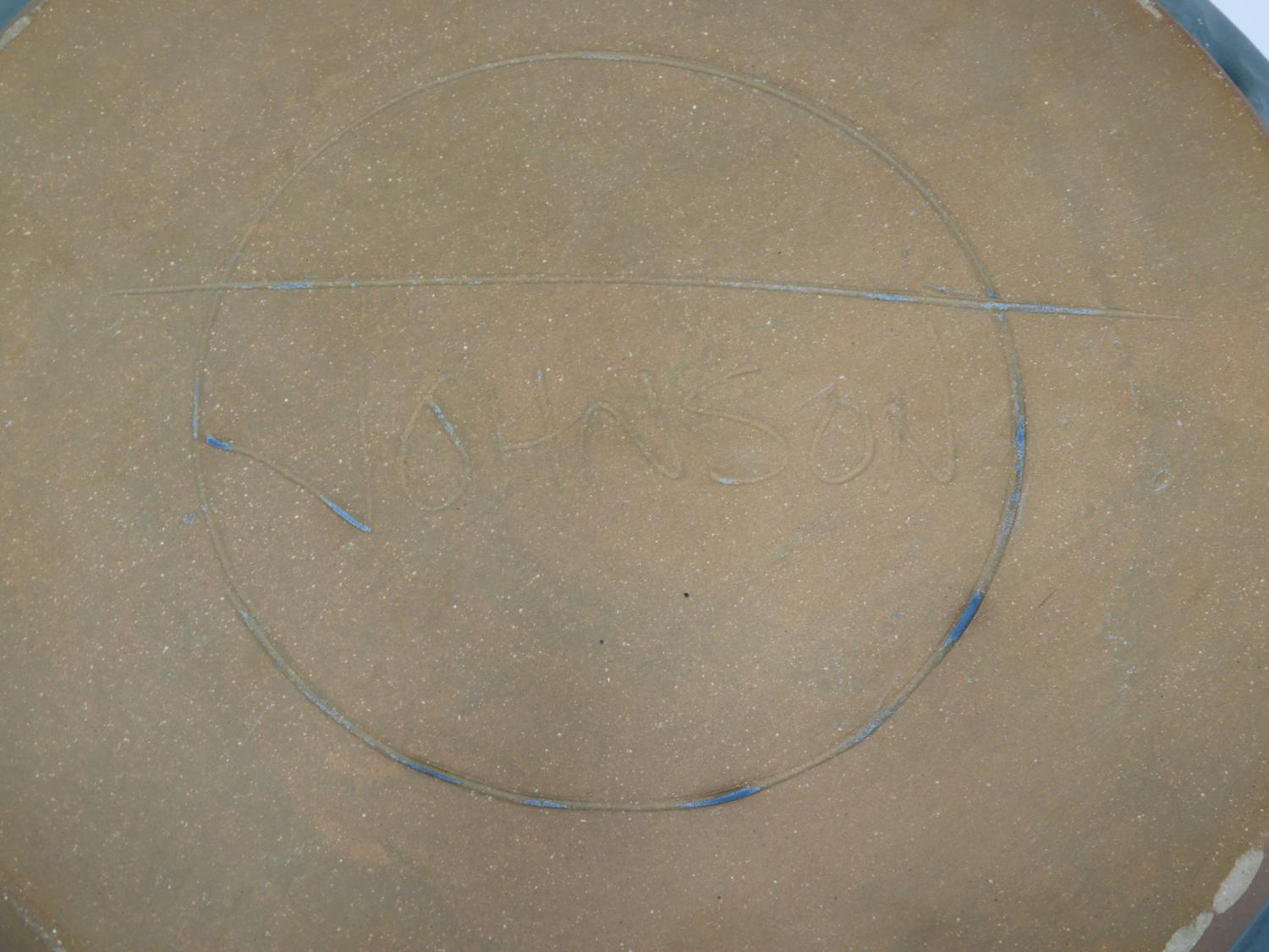 art pottery charger signed johnson, dia. 14 3/4"
