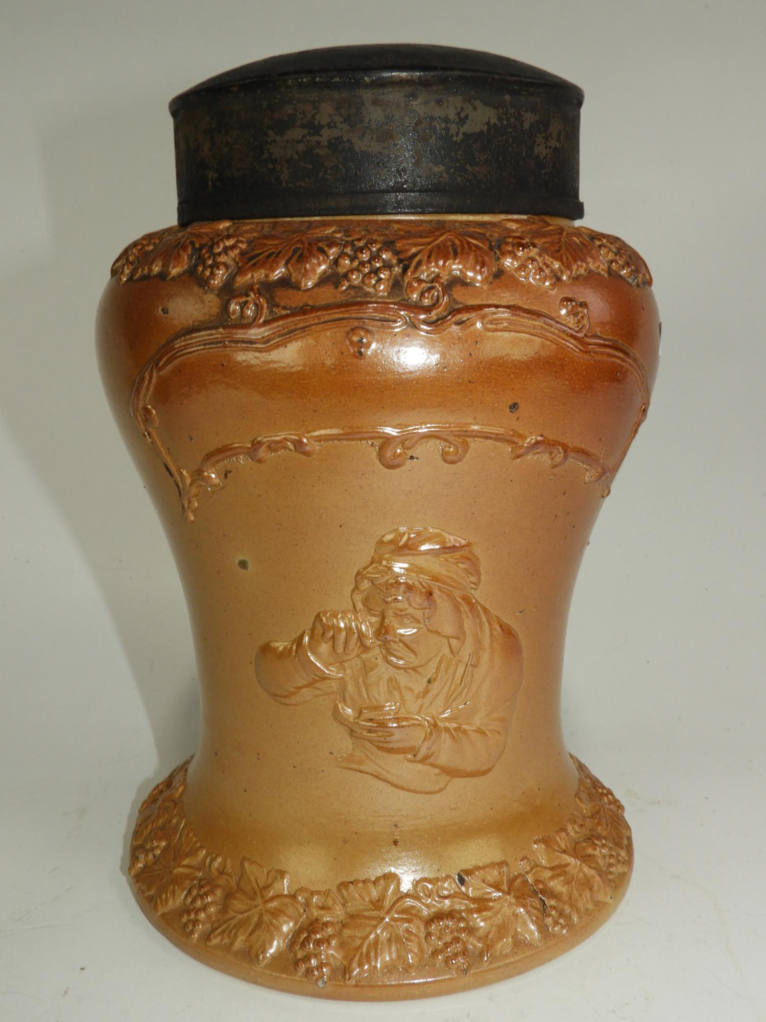 english salt glazed snuff tobacco jar, ht 9 3/4"