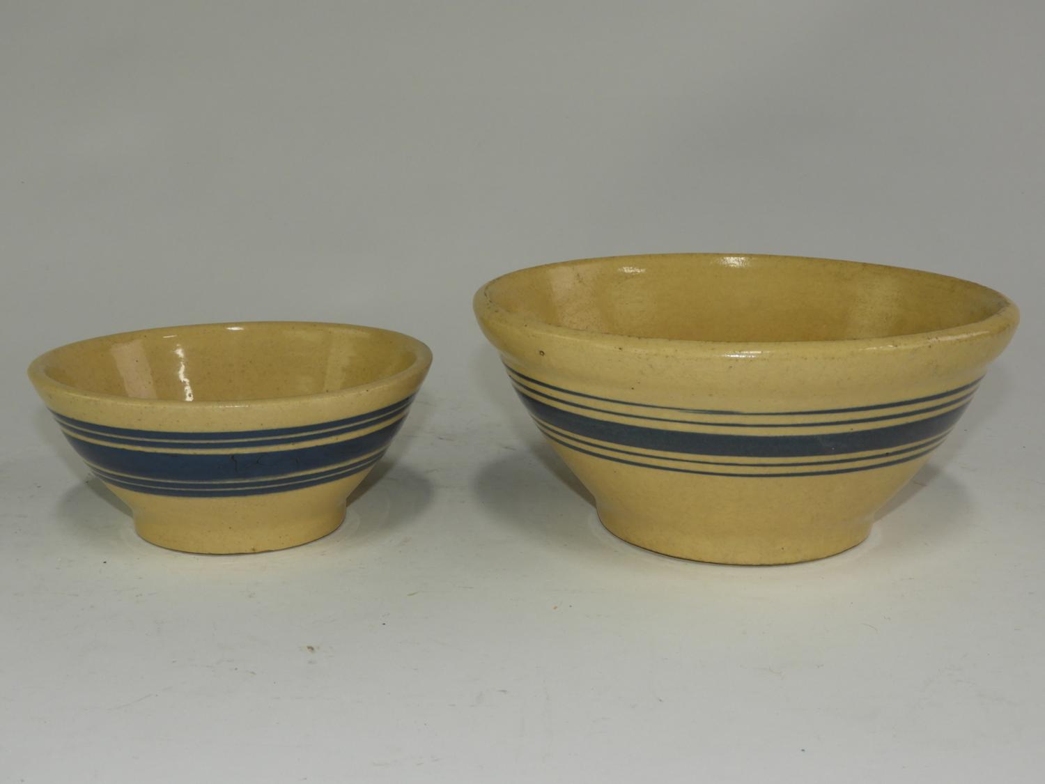two yellow-ware bowls, 3 3/4" x 8 1/4"