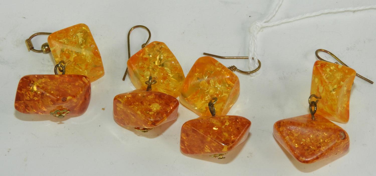 2prs of amber pendant earrings