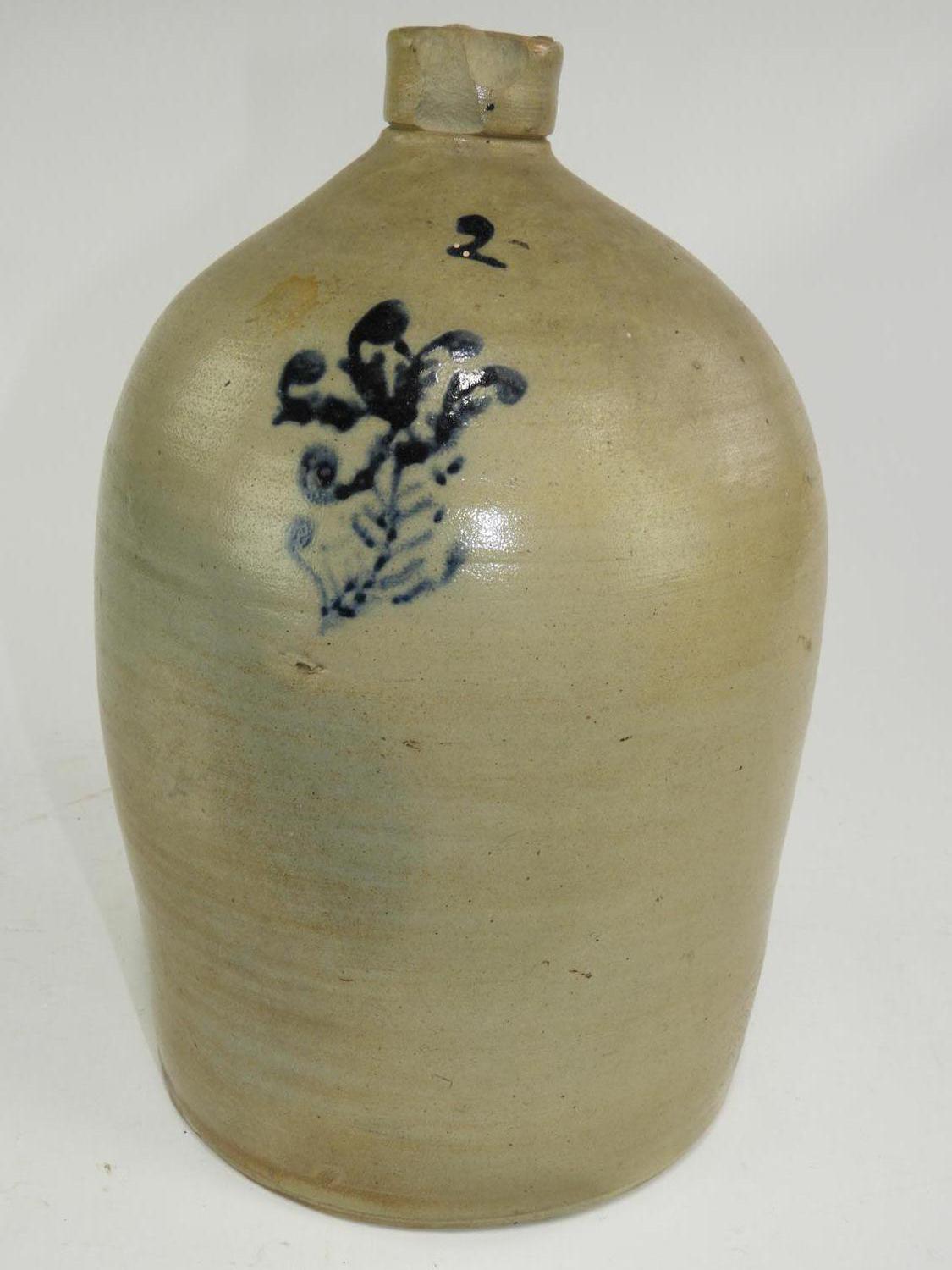 floral decorated 2 gallon stoneware jug, ht. 14 3/4"