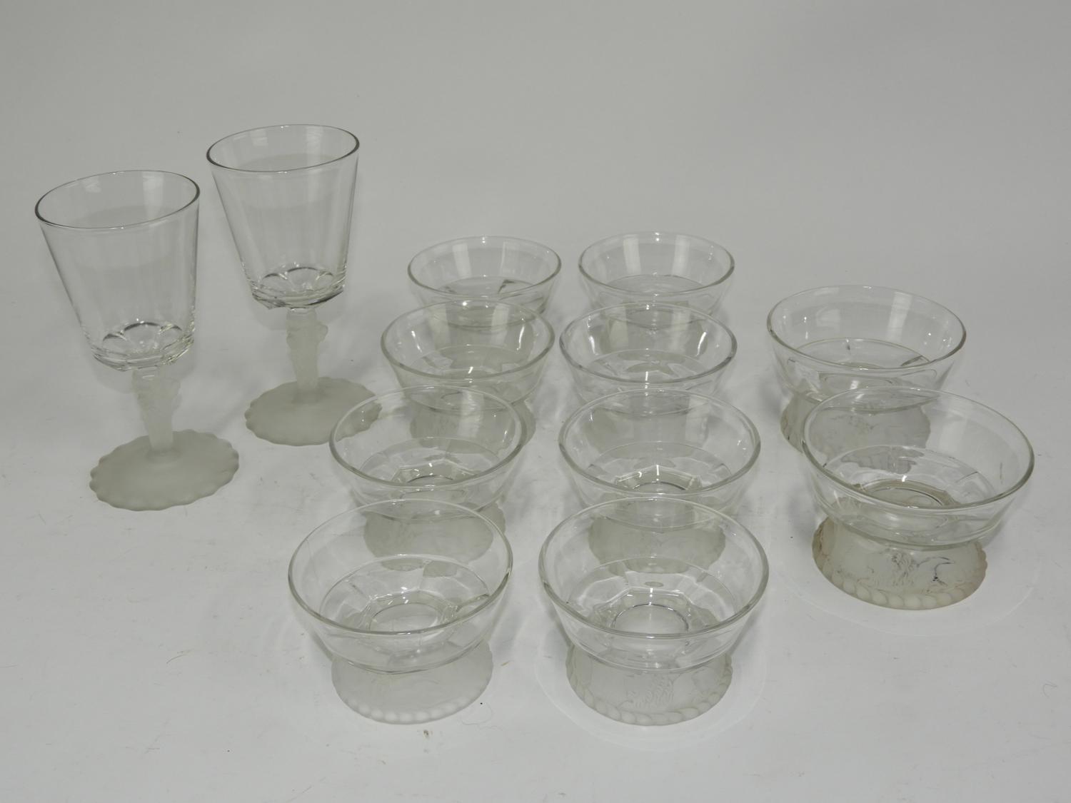 gillinder & sons frosted glass pedestal cups and goblets, 12 pieces