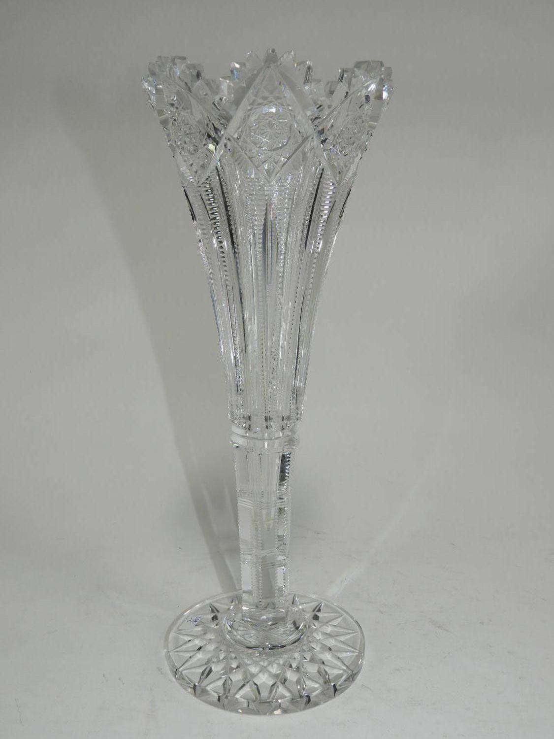 hawkes cut crystal trumpet vase, ht. 12"