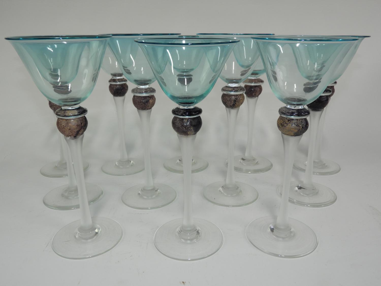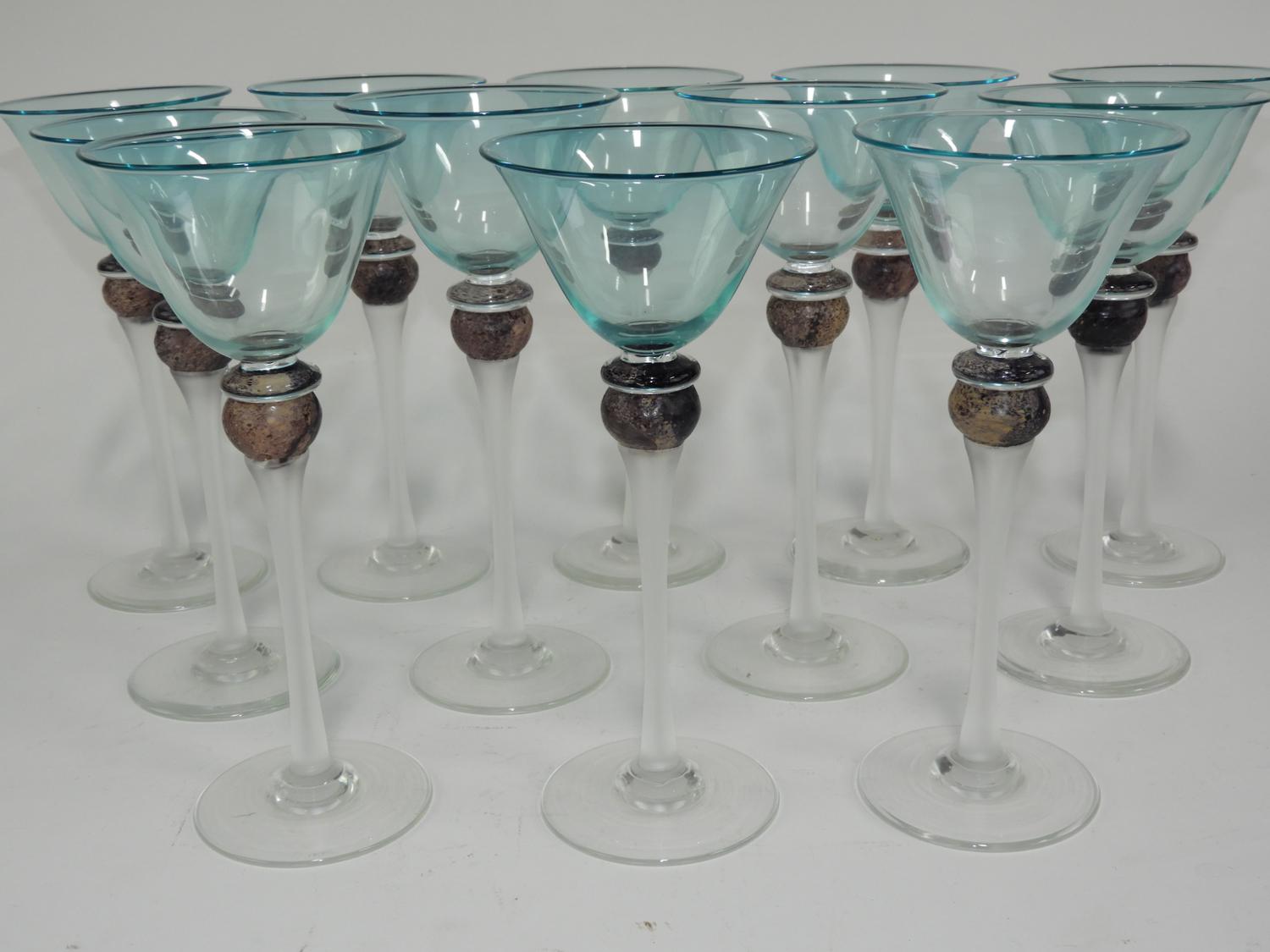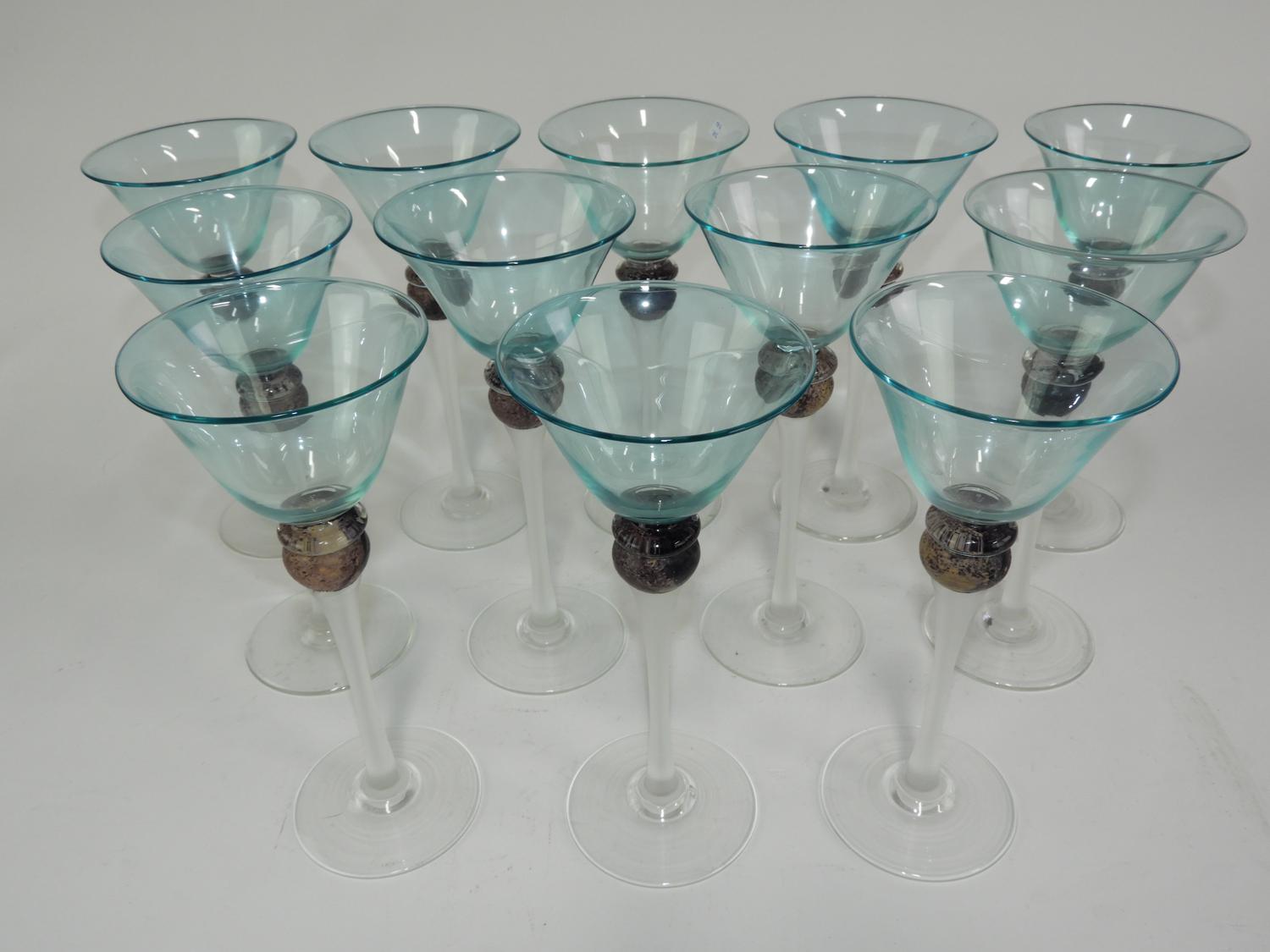 set of twelve art glass stemglasses signed a. h. keatz, d.1990, ht. 10 1/4"