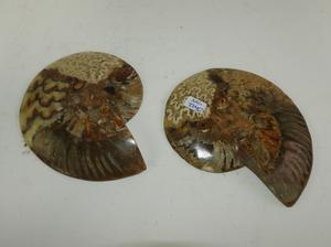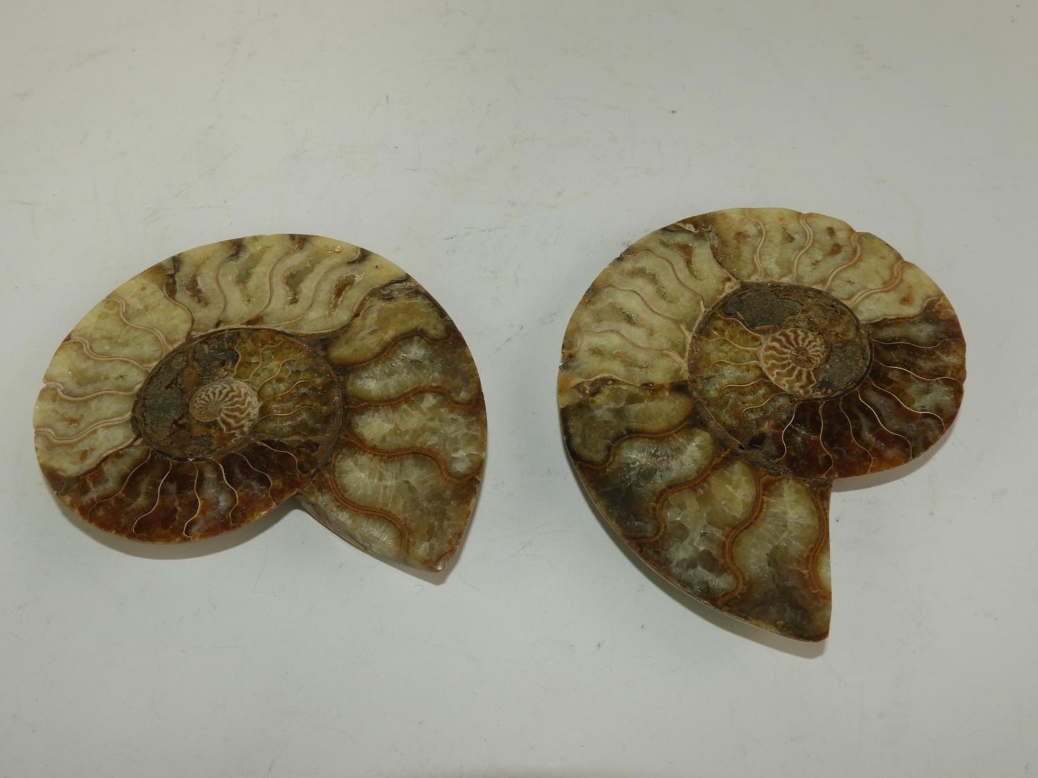 2 piece cut and polished ammonite fossil, length 4 3/4"