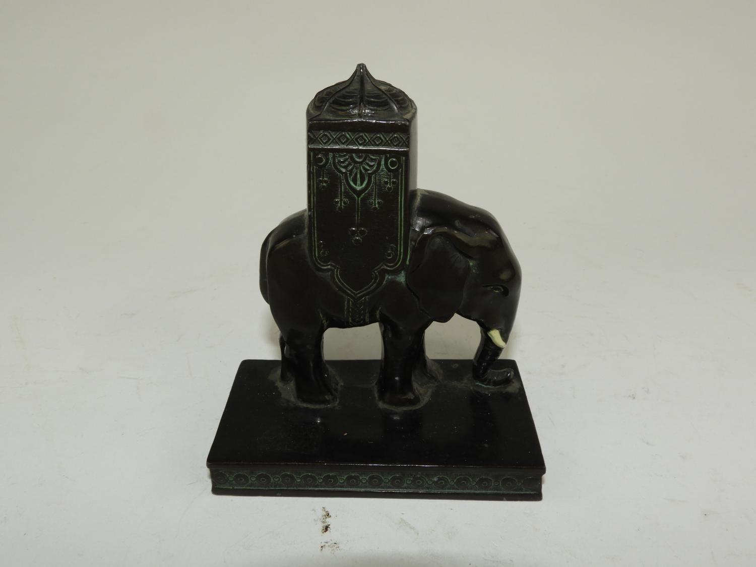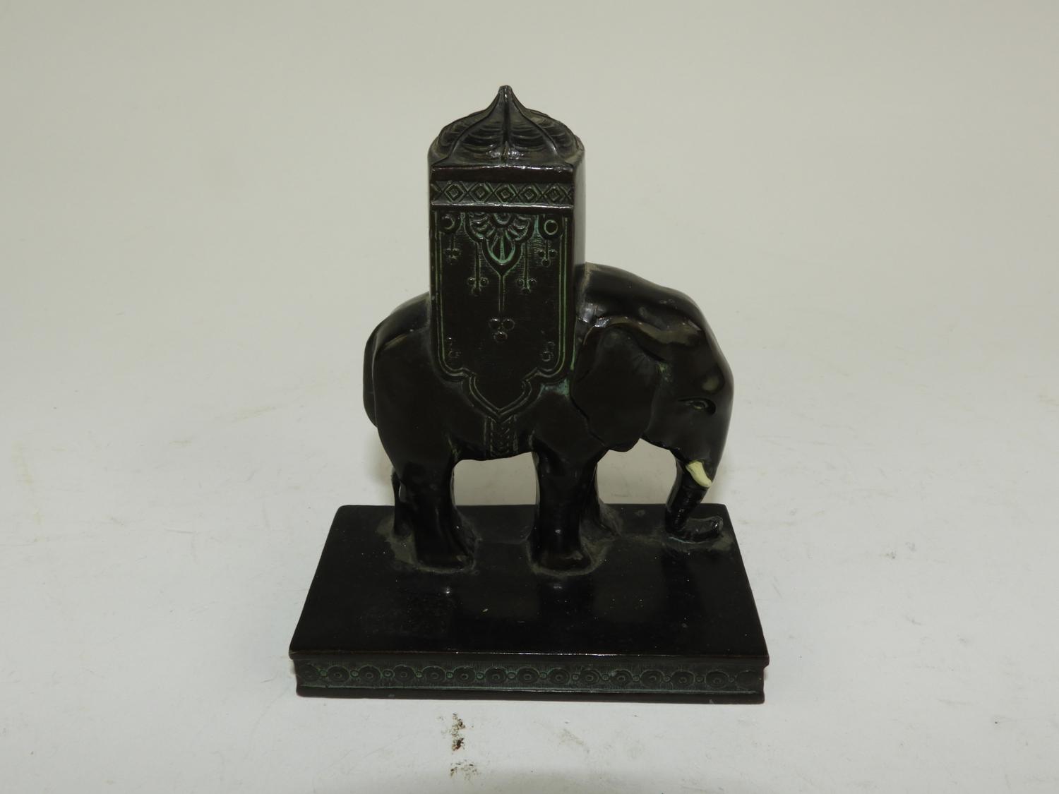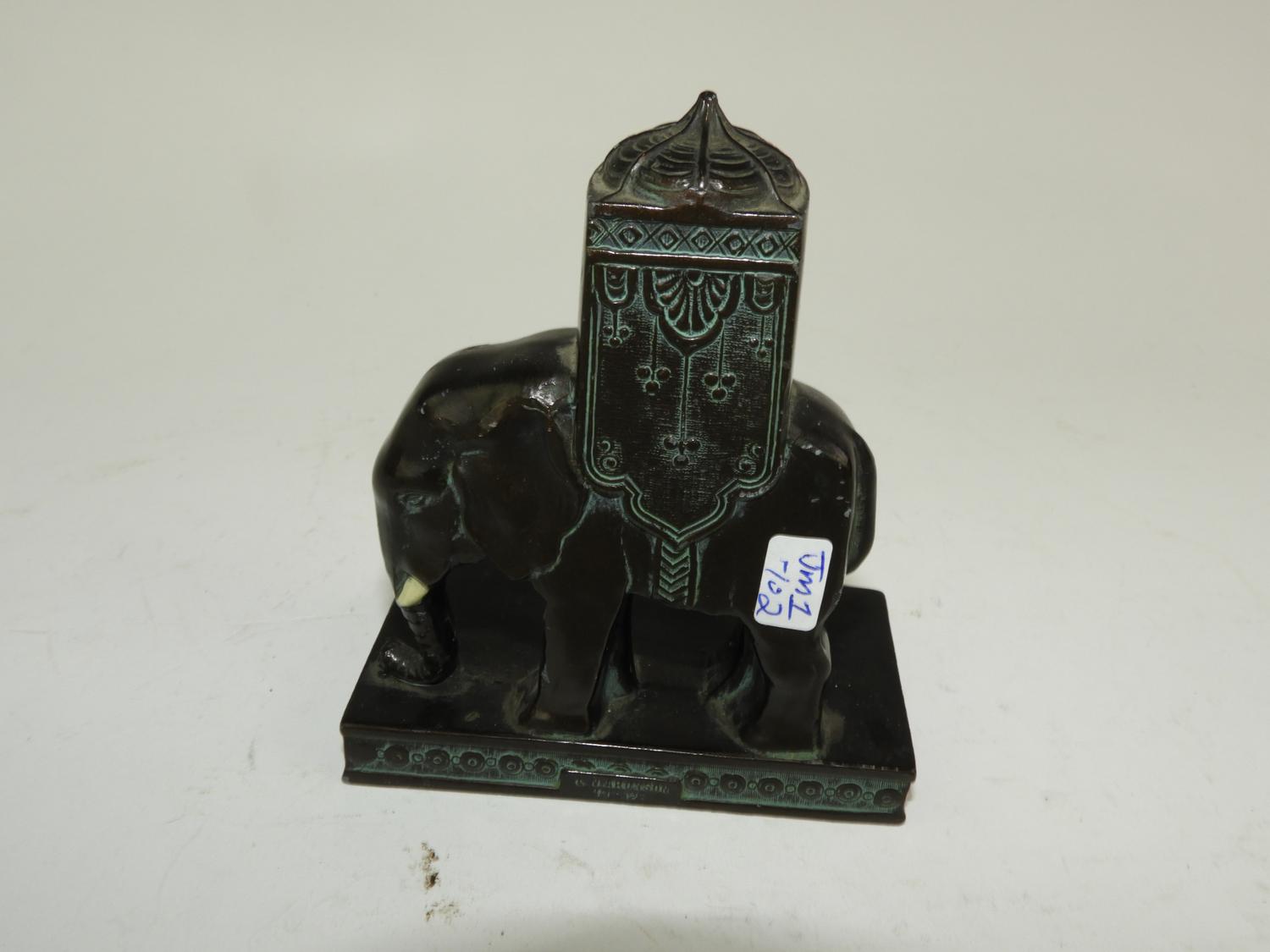 louis vincent aronson (1869-1940), d.1928, bronze patinated cast orientalist style elephant, 4 1/2" x 3 1/4" x 2"