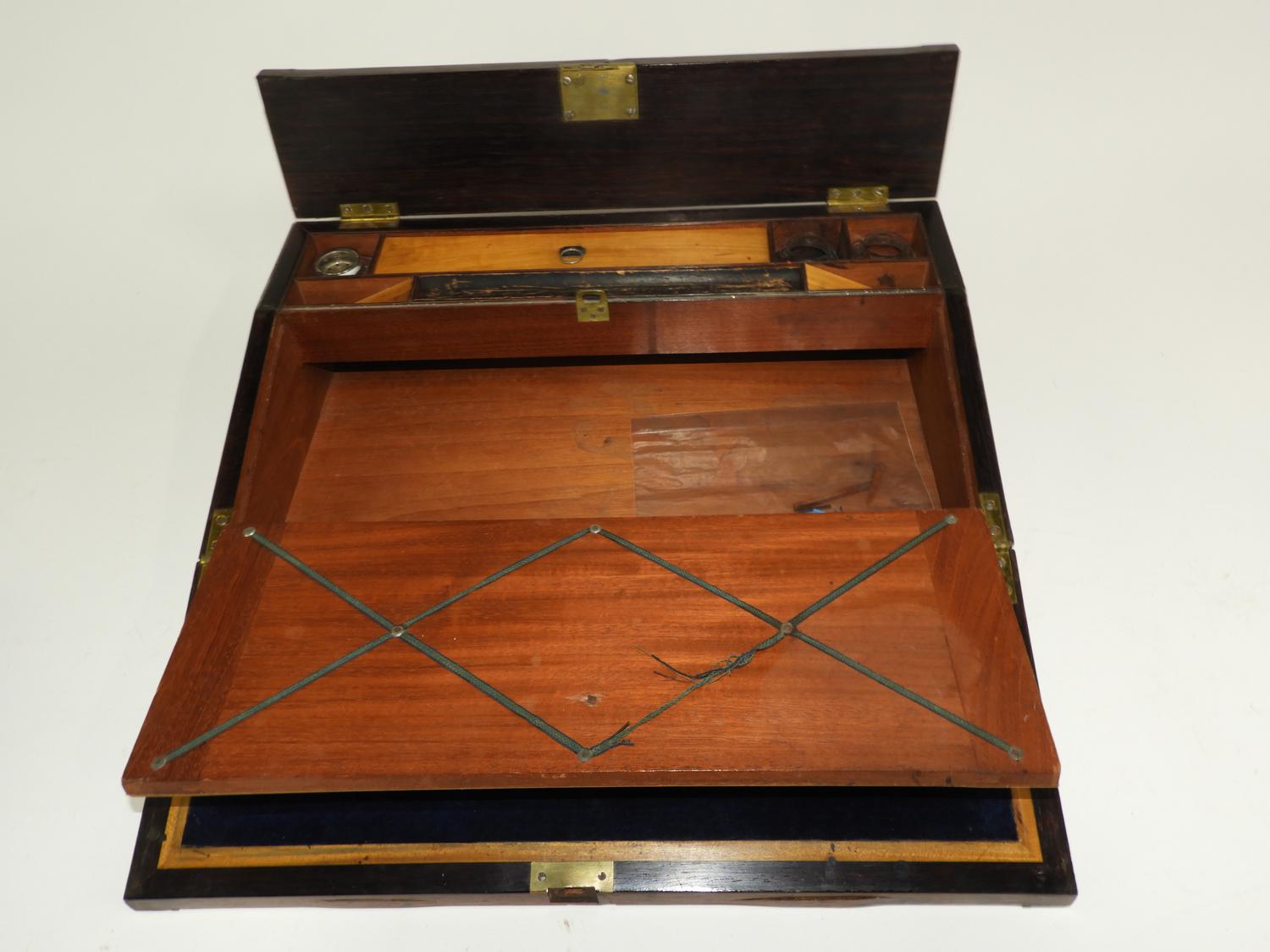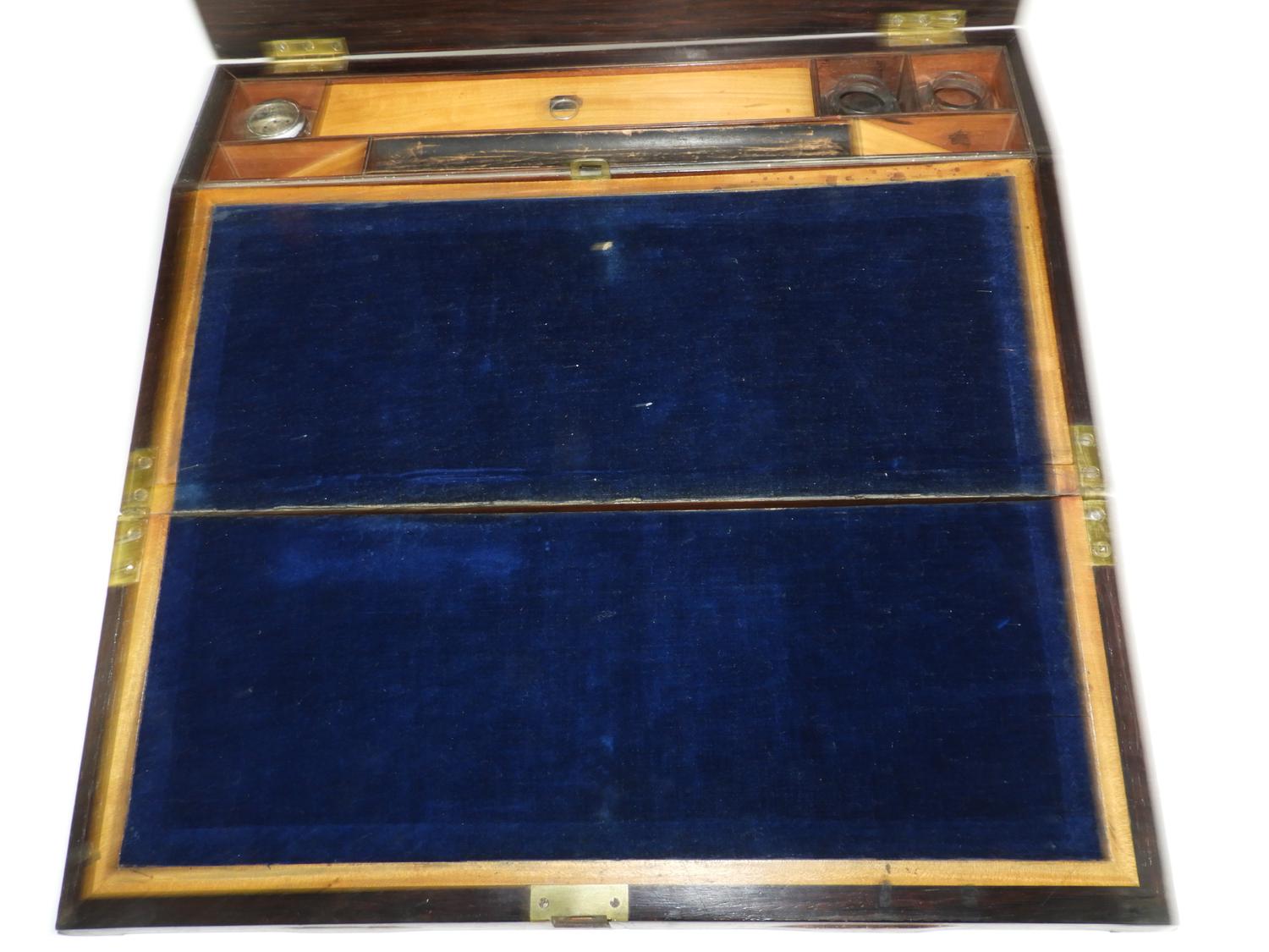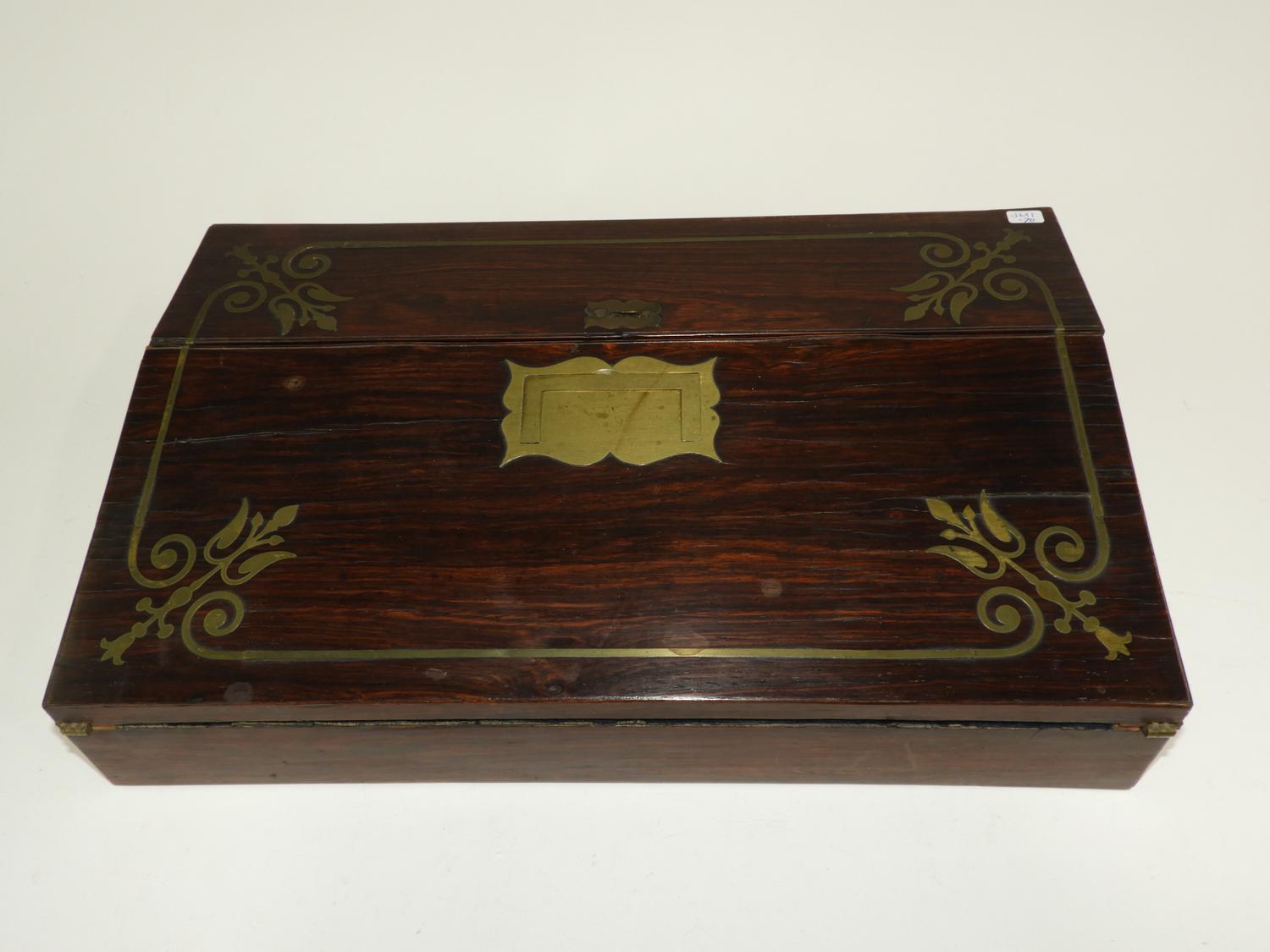regency cut brass rosewood writing slope, early 19th century, 4" x 9 1/2" x 16"