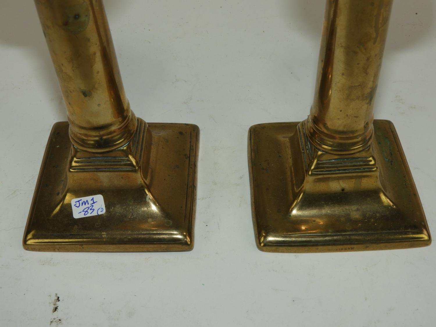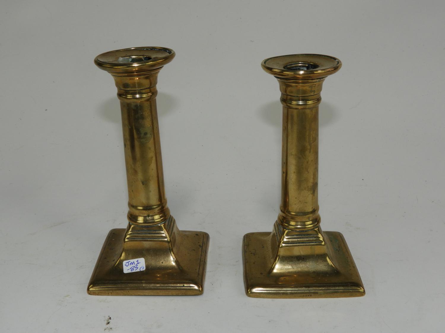 pair of 19th century brass push bottom candlesticks, ht. 6"