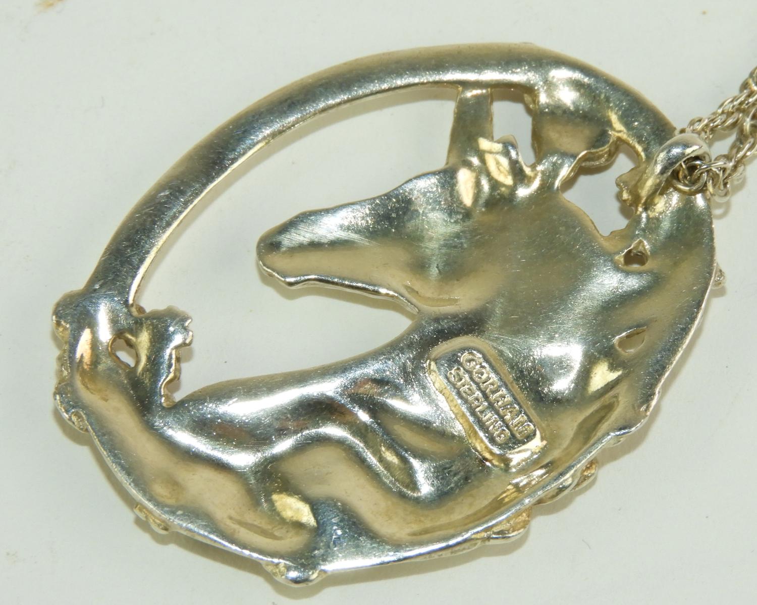 gorham sterling silver unicorn pendant necklace, 24" chain, pendant is 1 3/4"